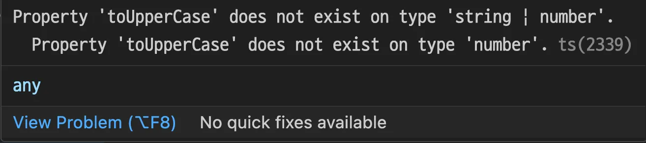 각 타입일 경우에 대해서 실행부를 좁히는 것을 Narrowing 이라 하며 주석 부분과 같이 상황별 대처를 조건문으로 처리해주는 등이 필요