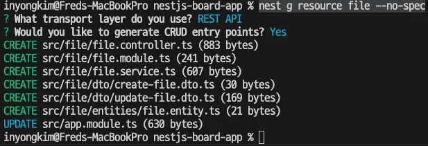 nestjs/cli 명령어를 통해 기본 구조를 생성