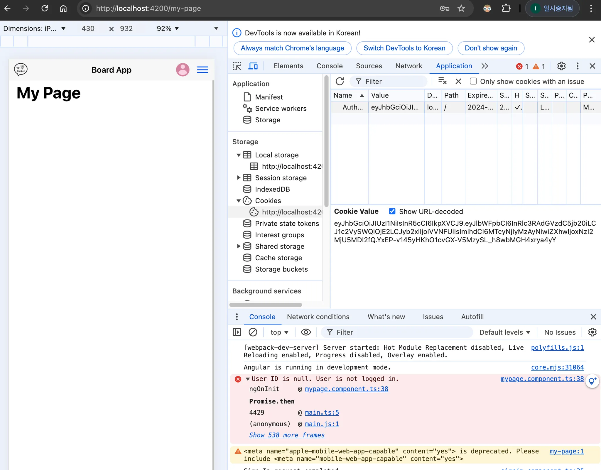 현재 JWT토큰을 쿠키에 저장하는 방식을 사용하는데 문제점이 발생했다.