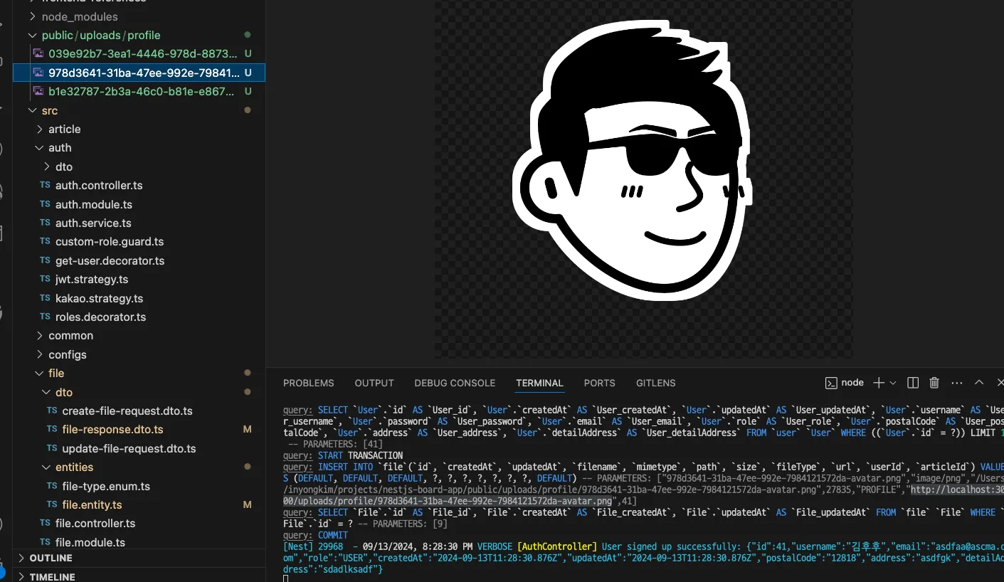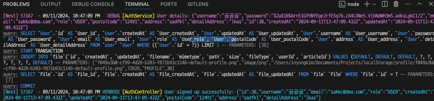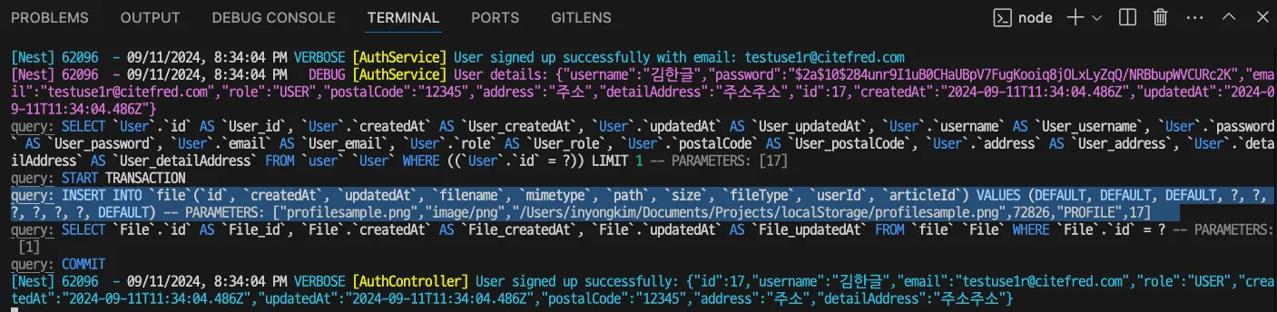 회원 가입 요청에 대한 파일 서버 정적 경로 저장 및 쿼리 실행