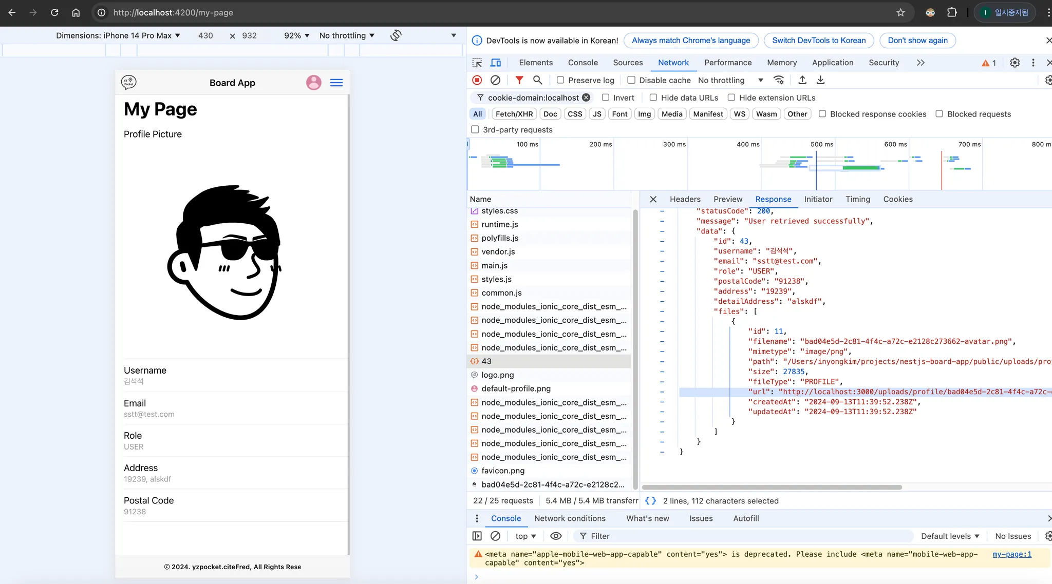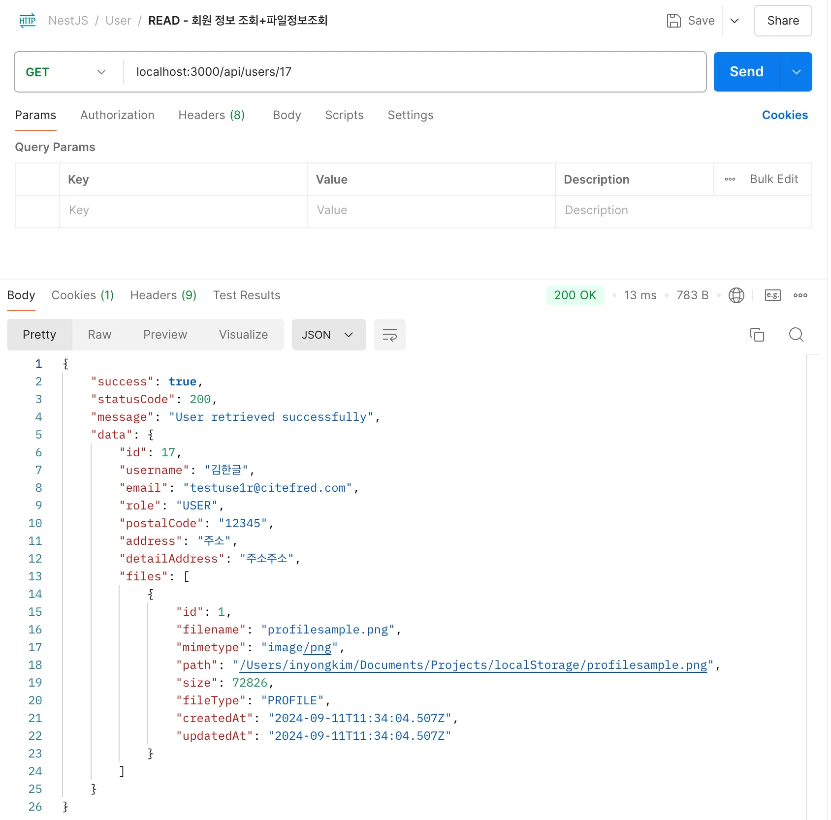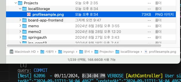이제 로그인 된 회원의 정보와 함께 파일 정보를 가져 올 수 있다.