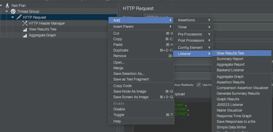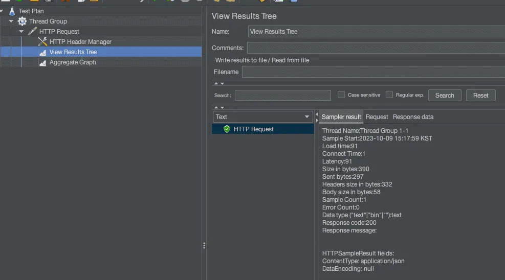 View Results Tree와 Aggregate Graph 리스너로 결과를 보고자 추가했다.