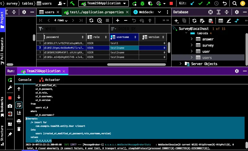 결과는 다음 처럼 HTTP 요청이 정상적으로 실행되며, 실제로 서버에서도 Controller부터 DB까지 해당 요청이 정상적으로 진행되고 저장 된 것을 볼 수 있다.