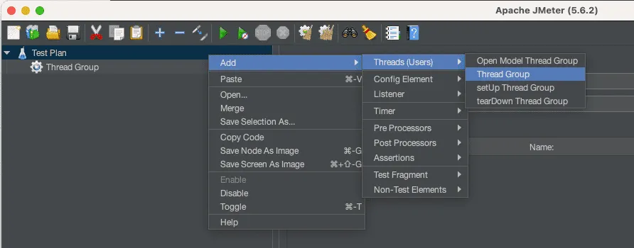 이름 및 Thread Properties 을 설정해준다.