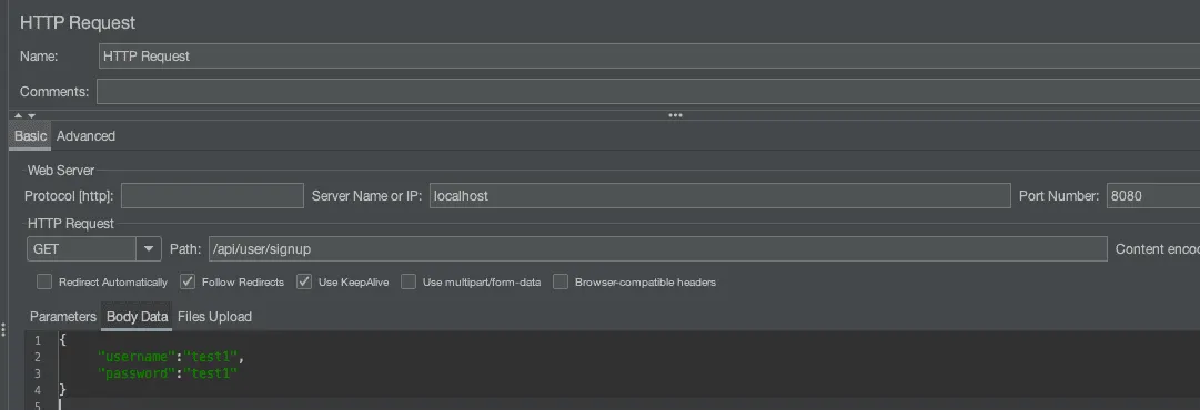 Path : 테스트할 API의 URI로 일단 api/user/signup