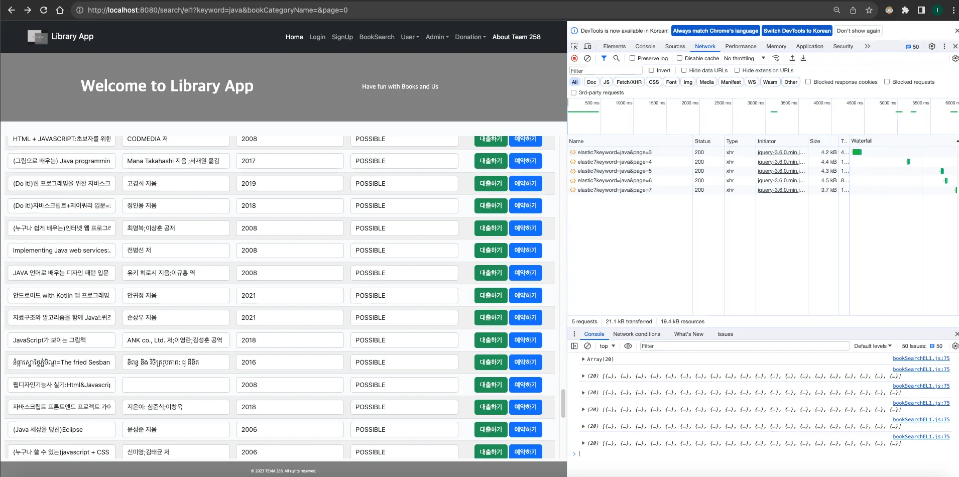 기본적인 테스트를 위한 컨트롤러 작성입니다. Elasticsearch용 엔티티인 ElasticsearchBook.java 를 사용해서 어떤 결과가 나타나는지 확인하고자 했습니다.