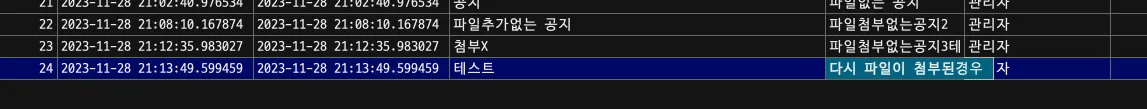 파일이 첨부된 공지에서의 현재 파일에 대한 정보 조회(조회 일부)
