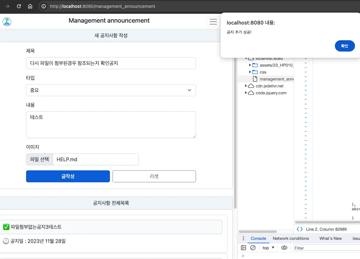 alert('공지 추가 성공!');
