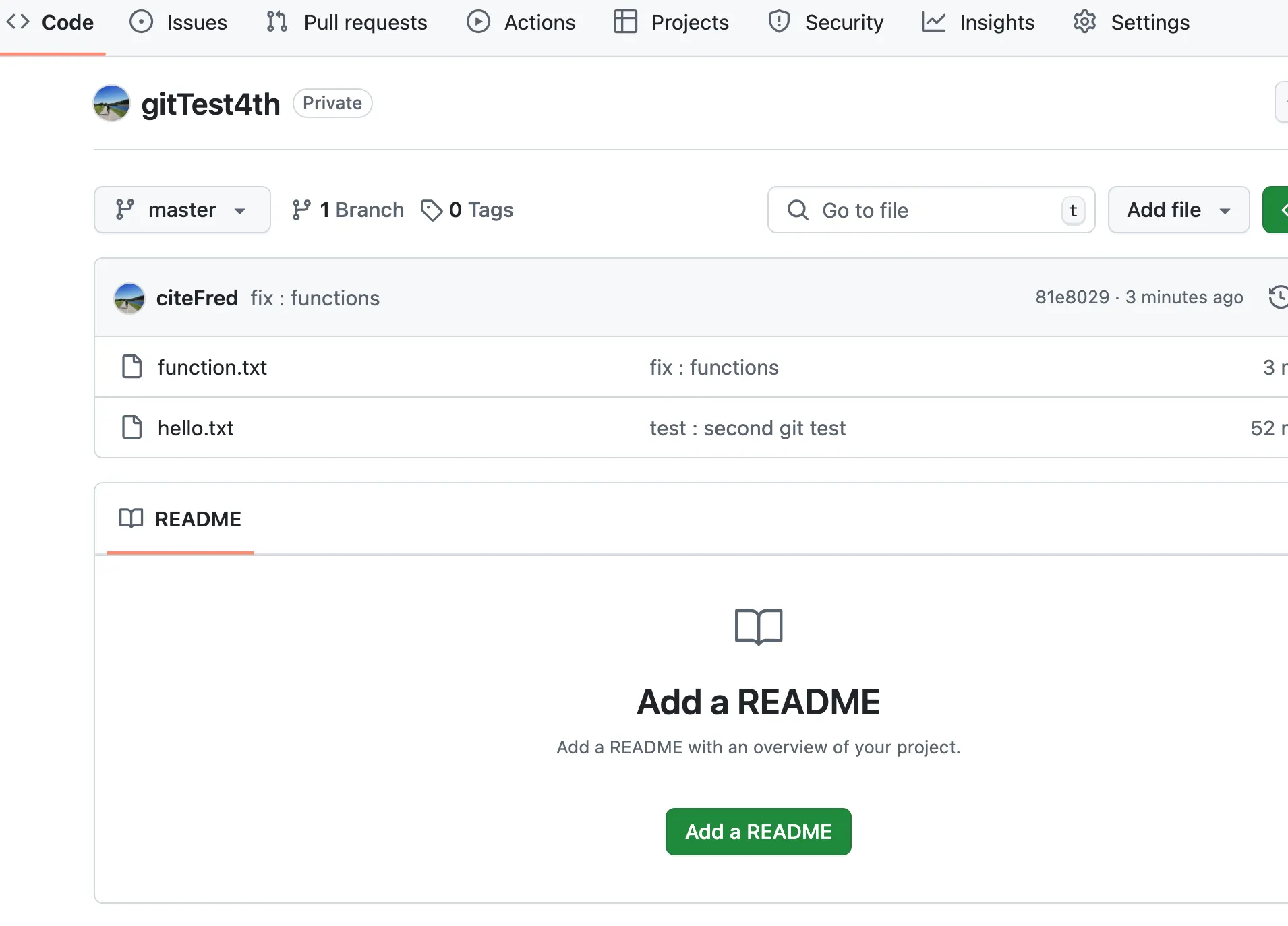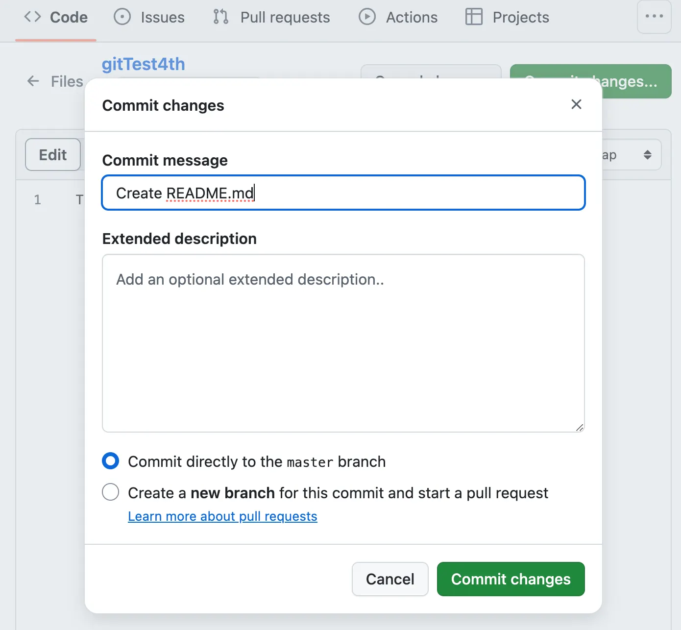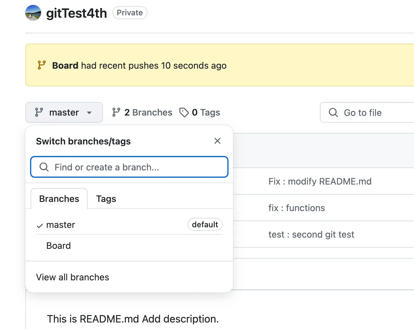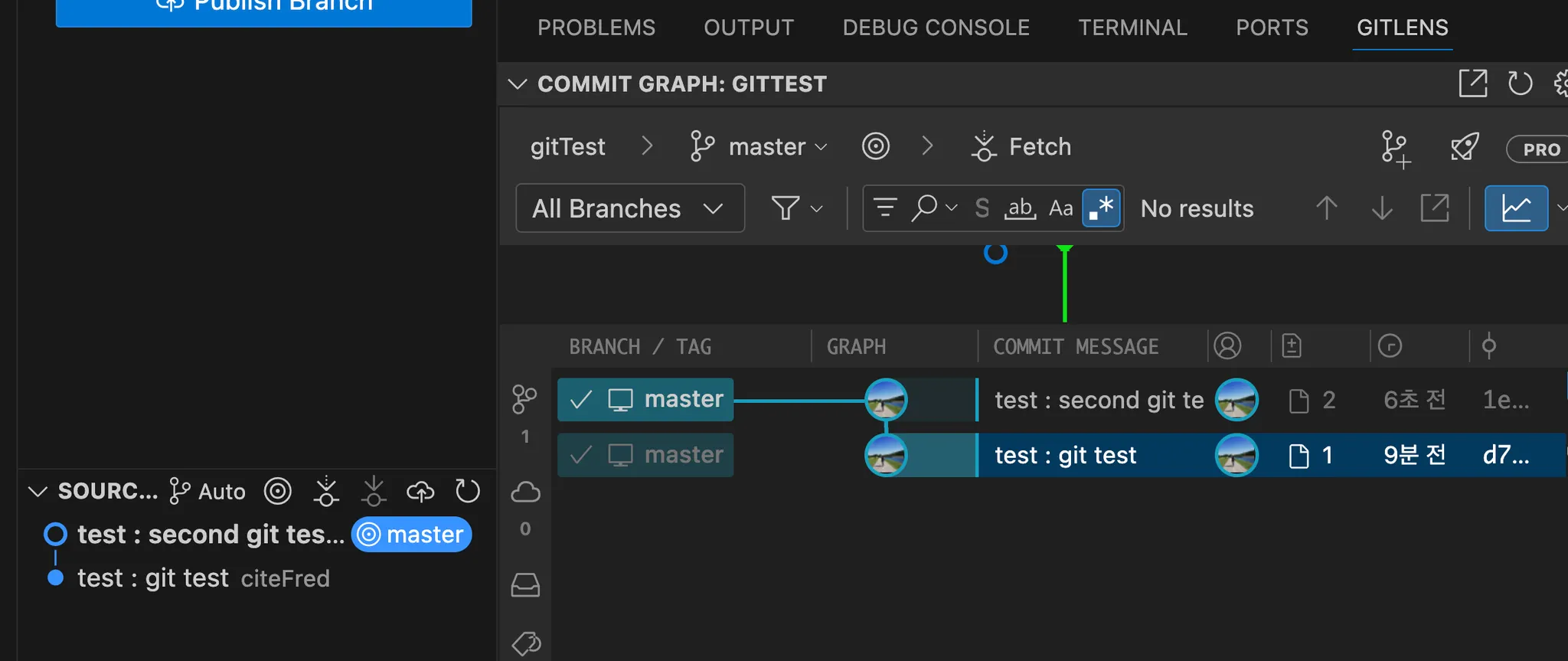 현재 커밋한 내용은 master라는 것으로 표기되어 있지만