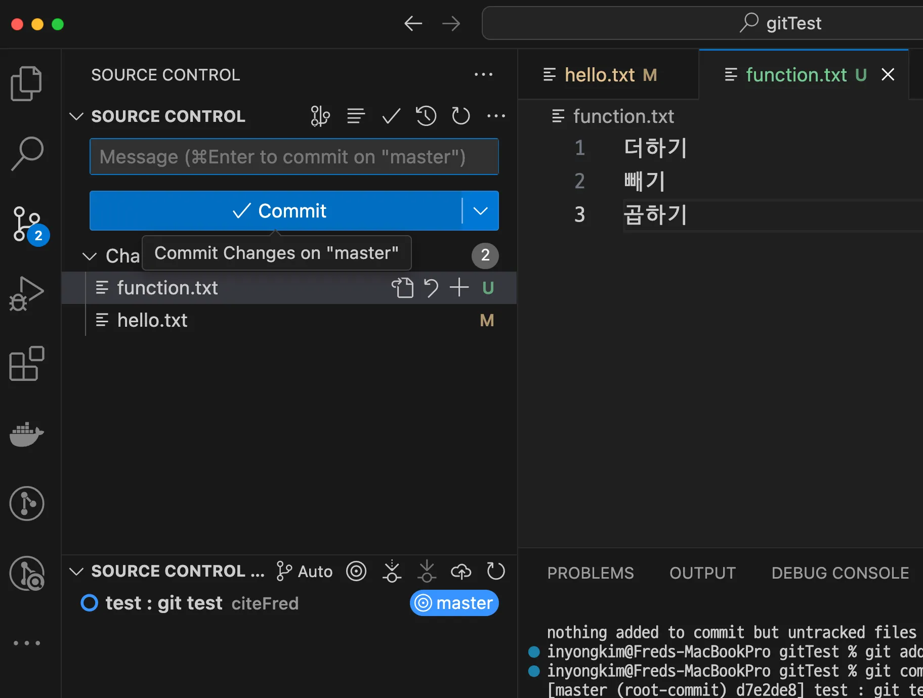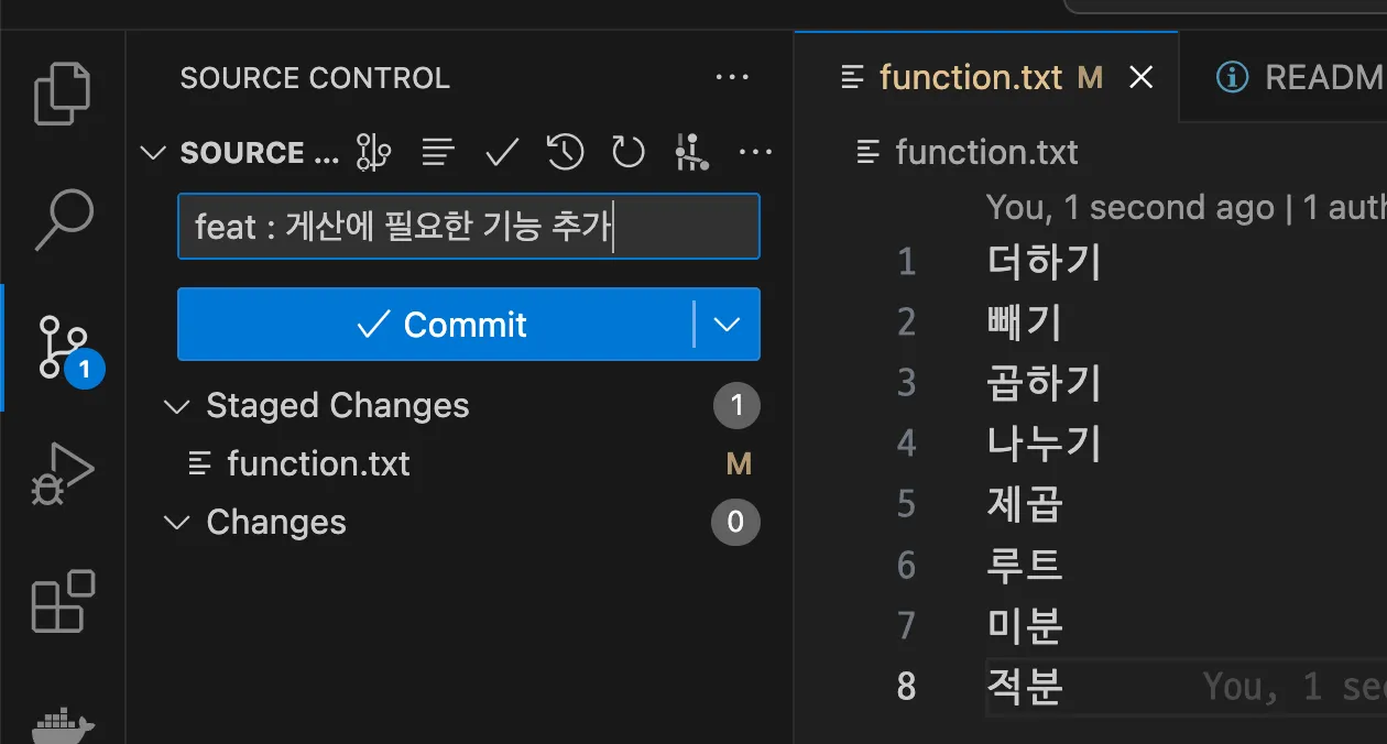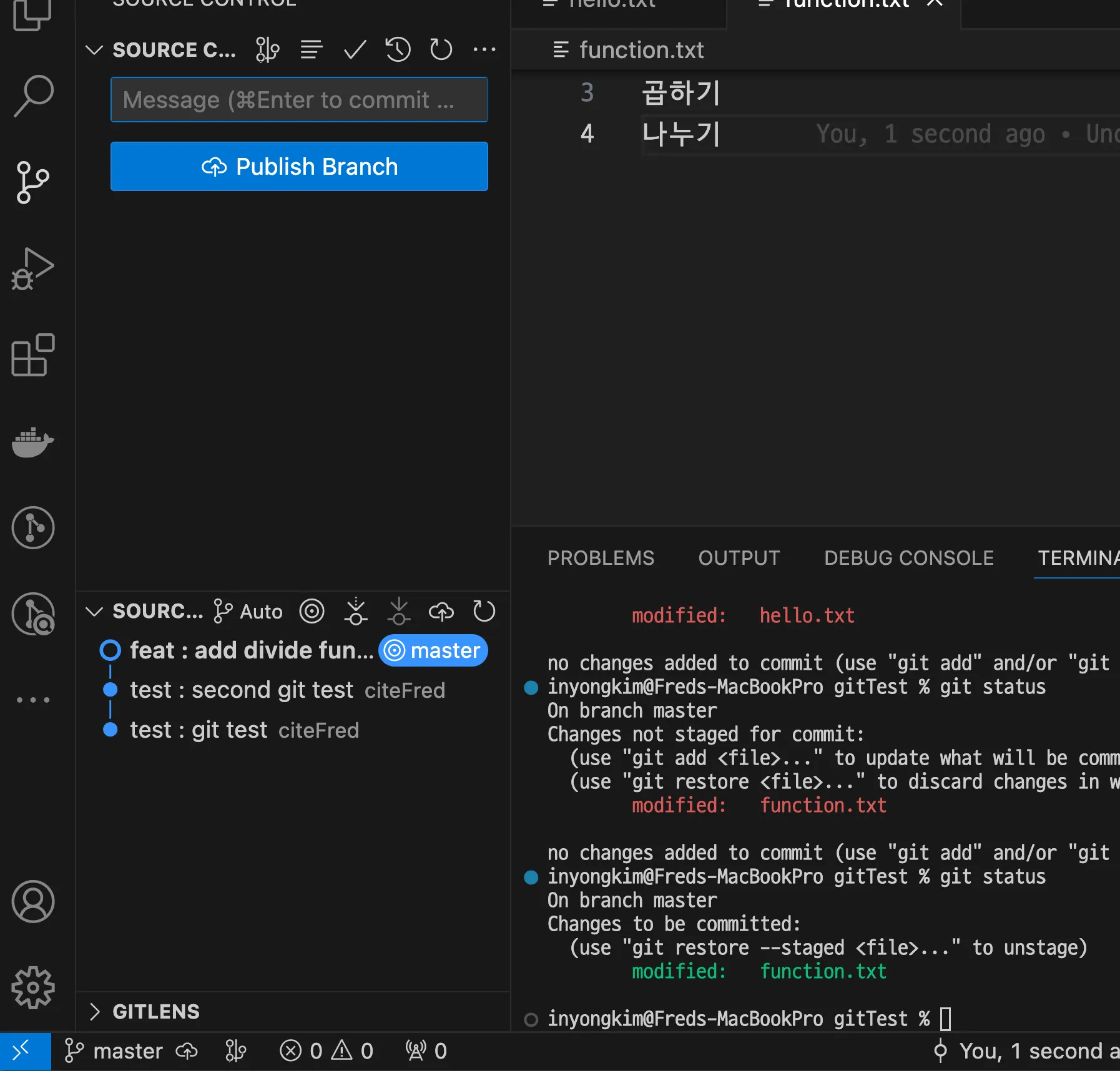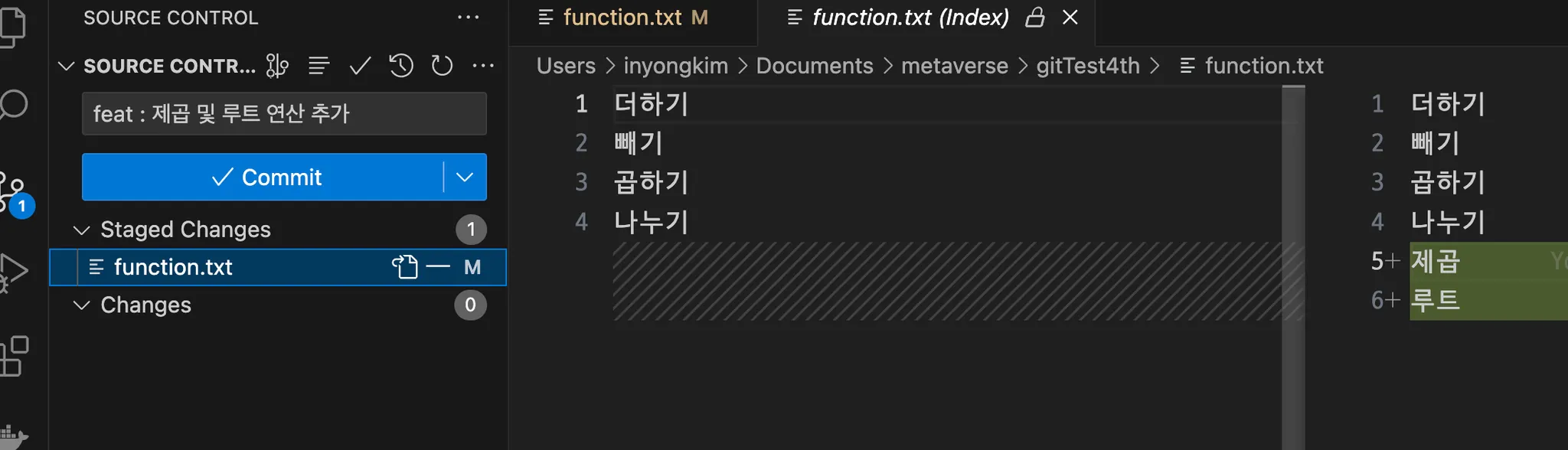 hello.txt 파일 내용 수정 + function.txt 파일 추가 - 추가 변경사항 발생