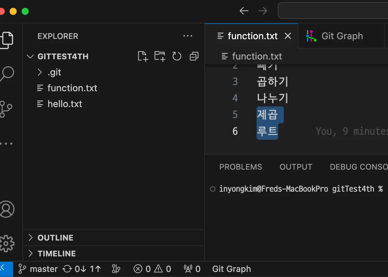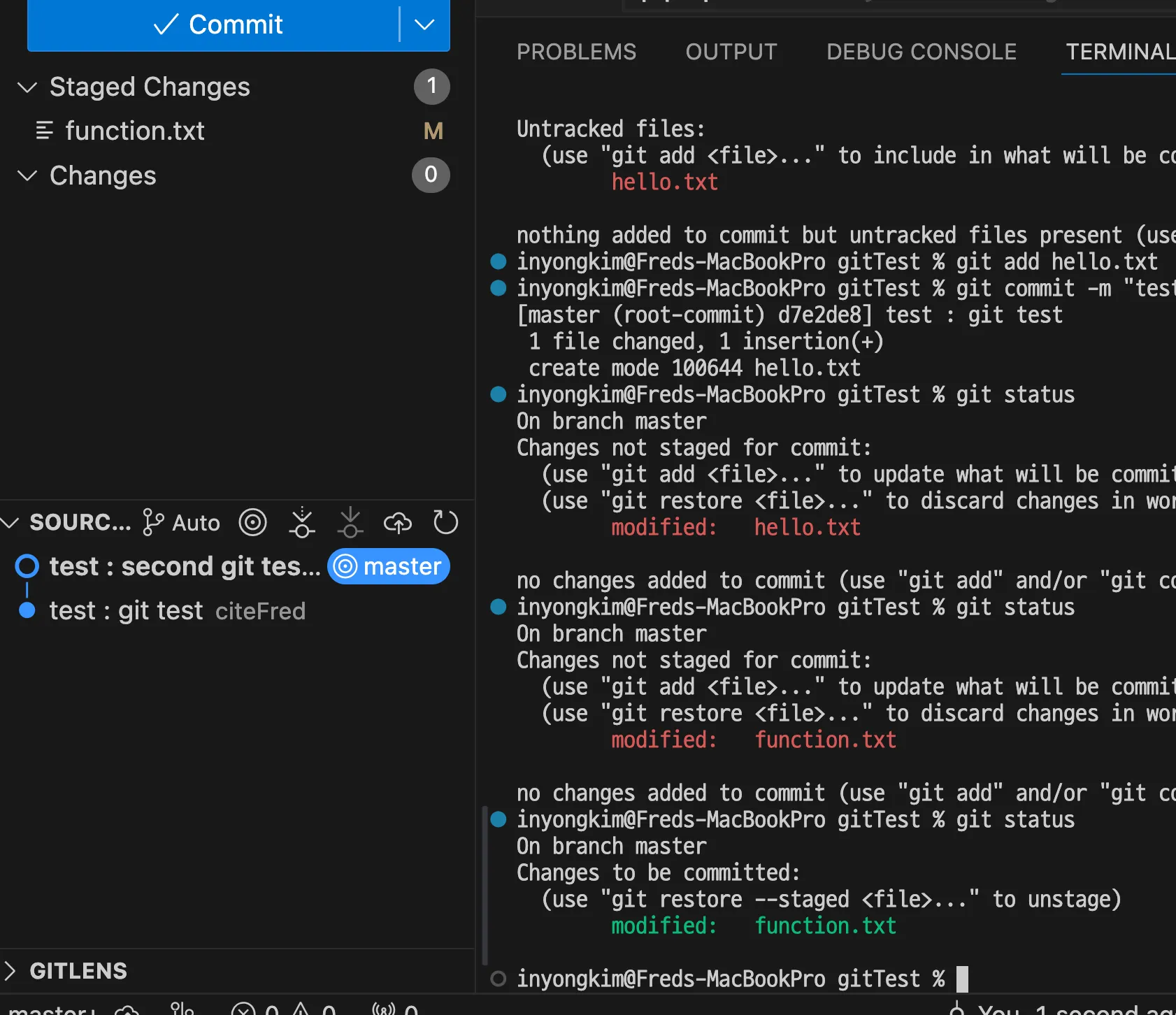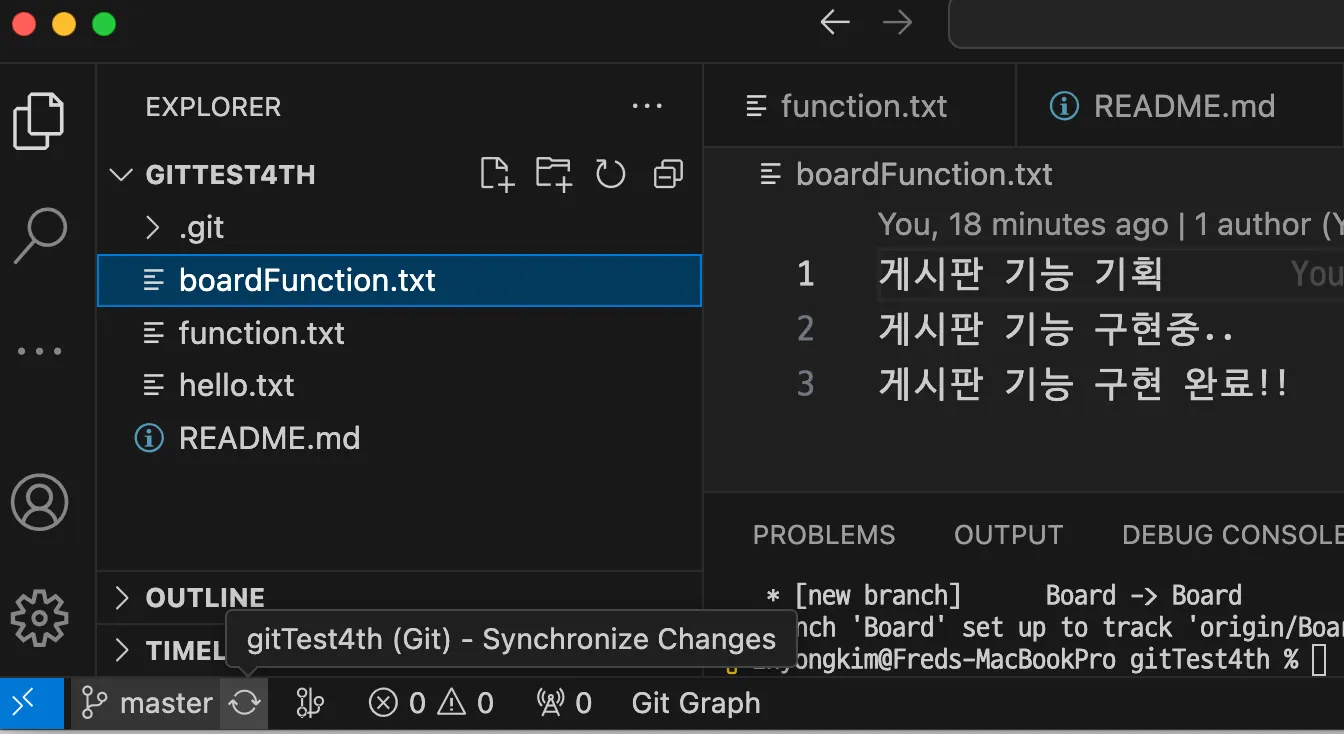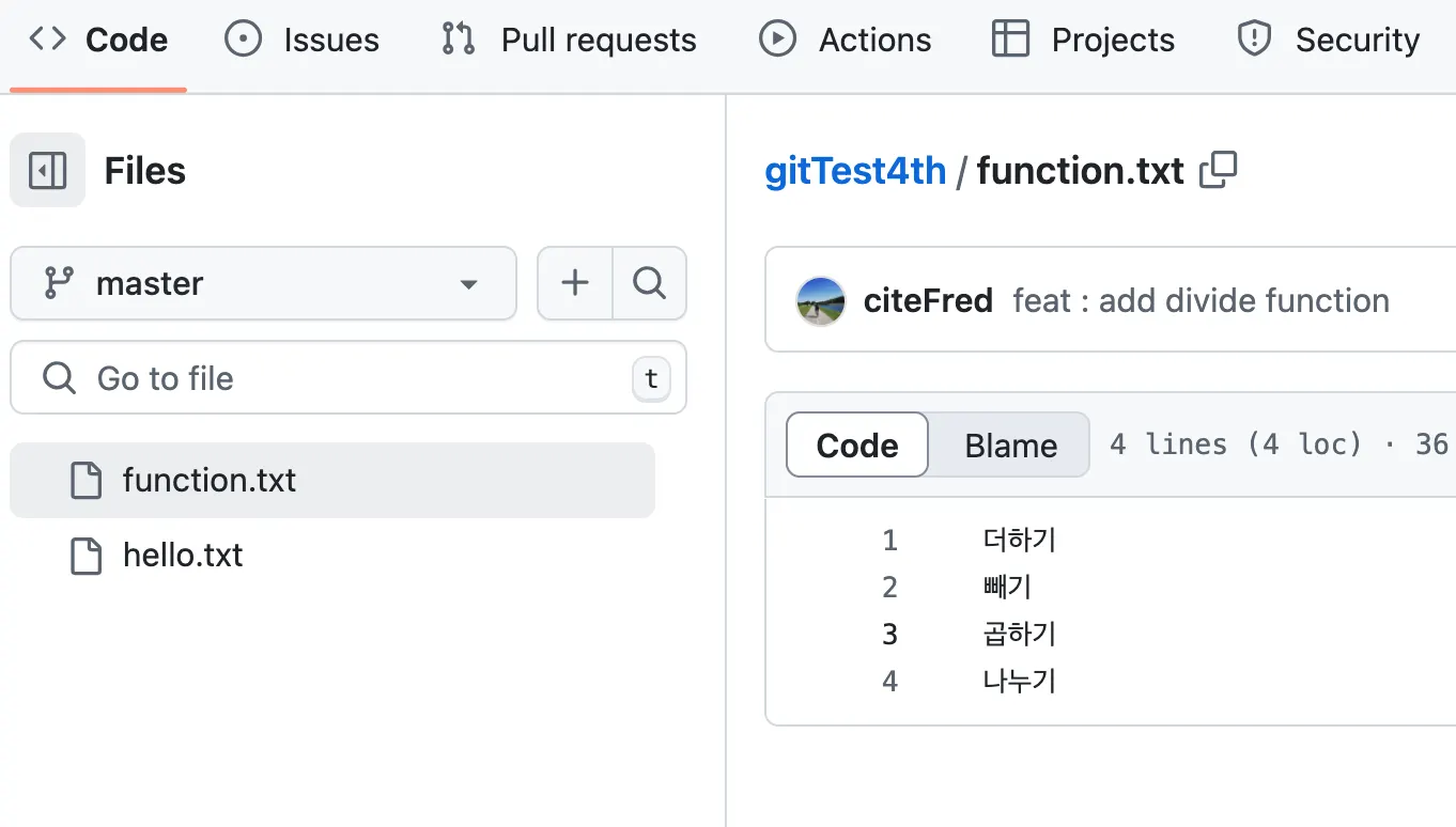 hello.txt 파일 내용 수정 + function.txt 파일 추가 - 추가 변경사항 발생