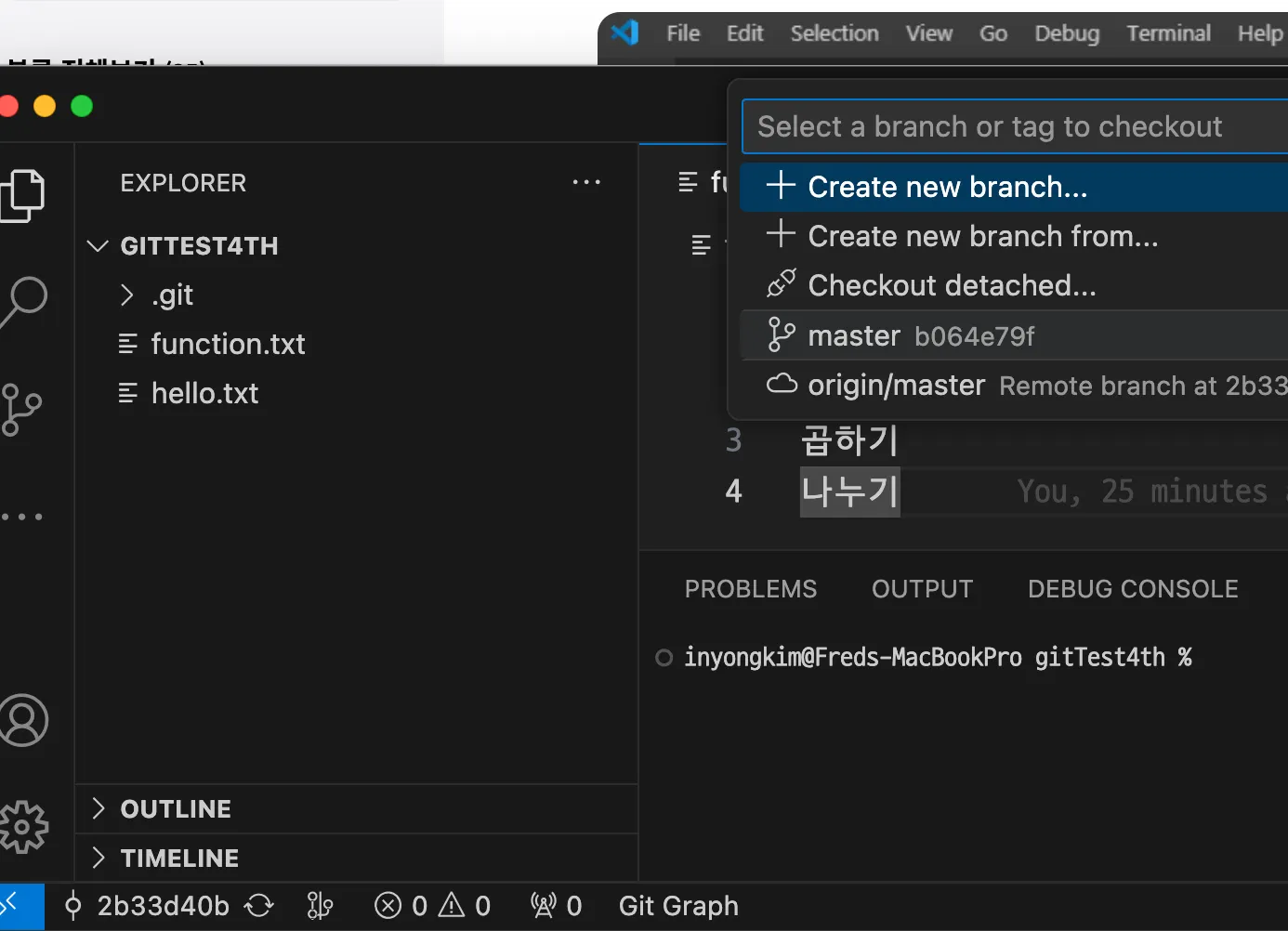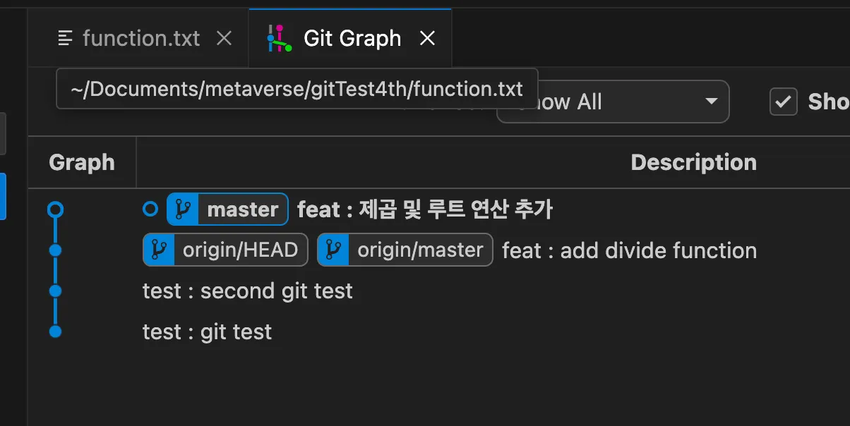 아래 origin/HEAD, origin/master가 아래 표기되어 있다.