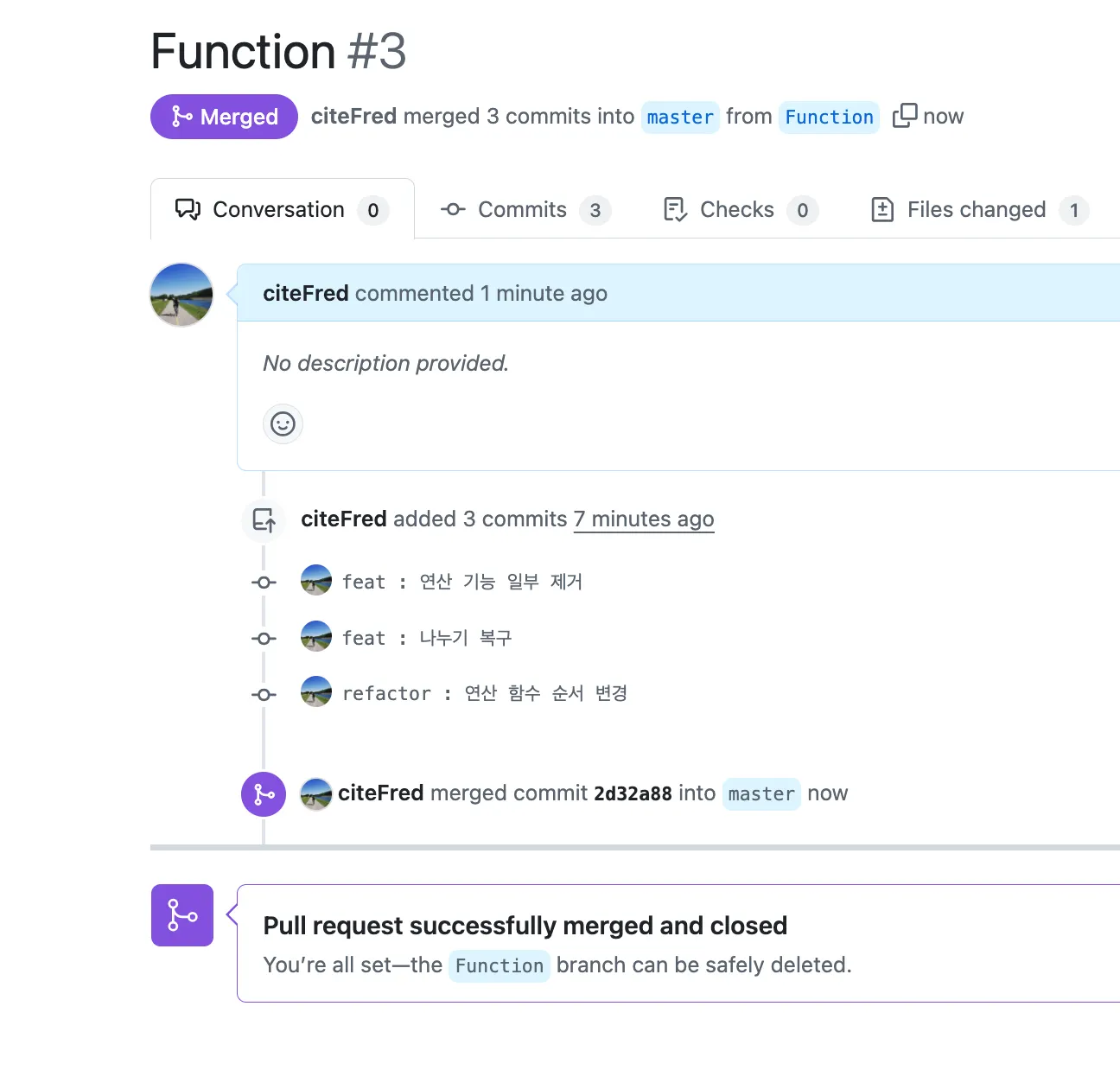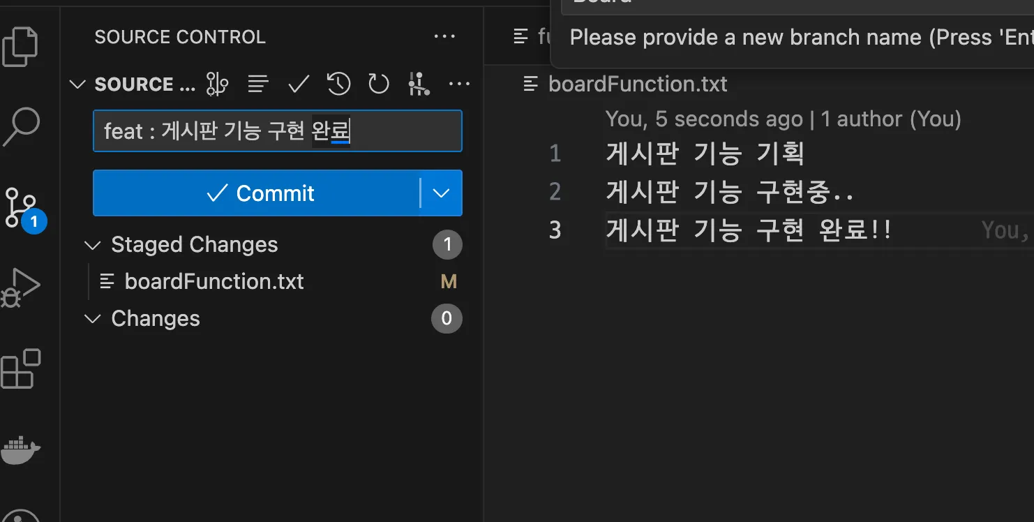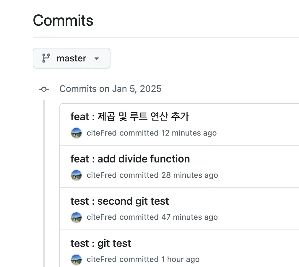 ex) “fix : 나누기 기능 추가”