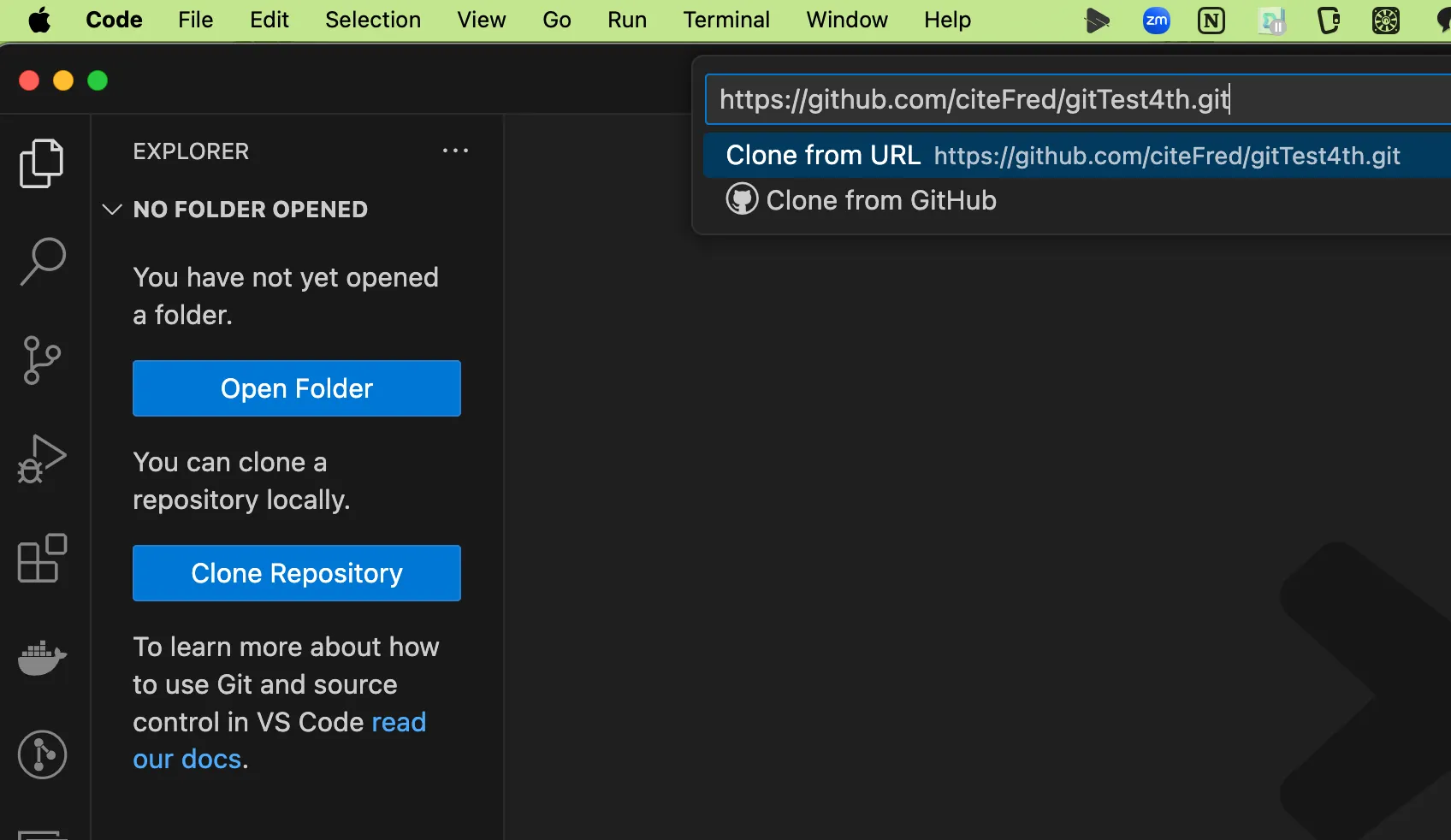 VSCode를 열고 원격 저장소를 클론한다.