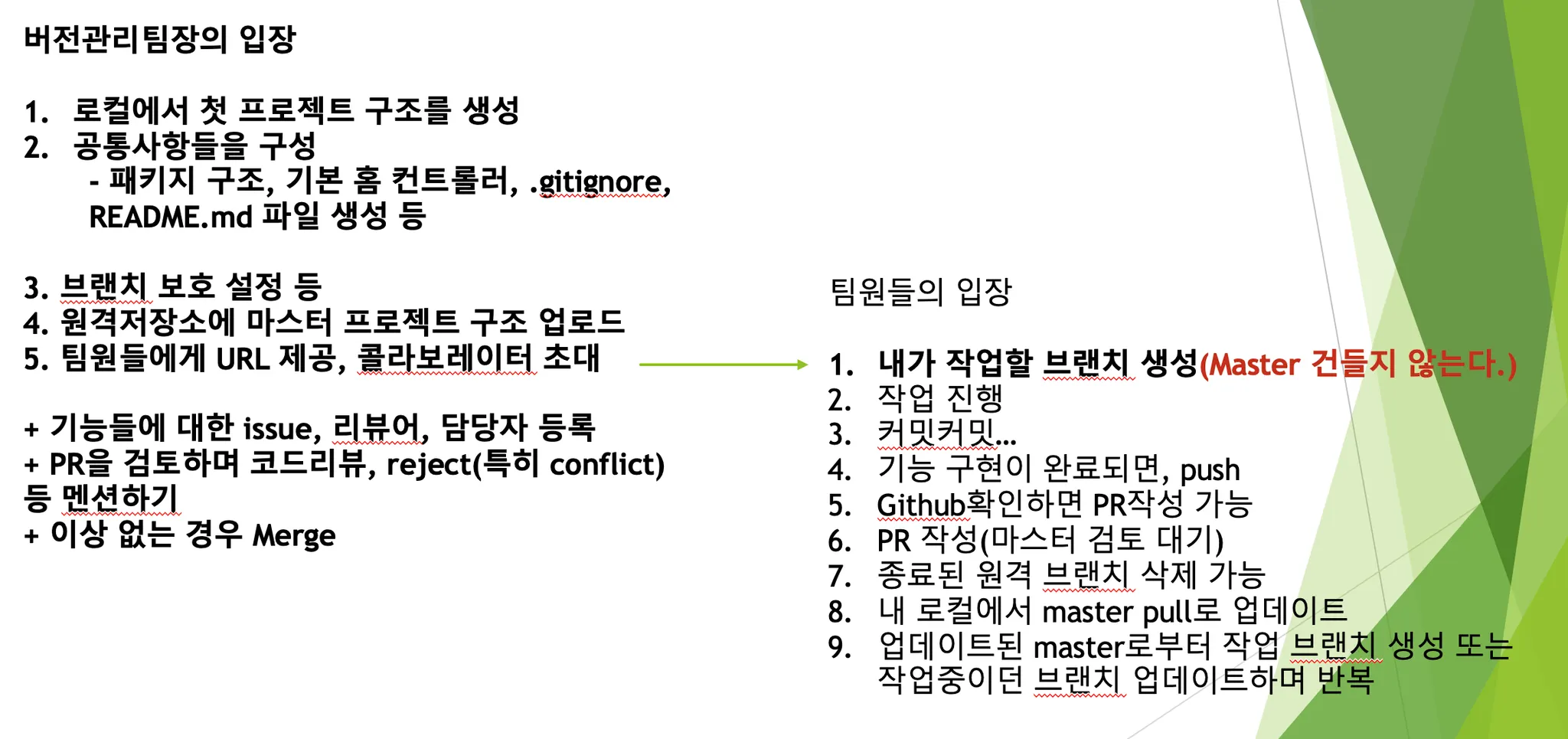 변수나 클래스명같은 명명규칙, 코드스타일 규칙등 맞추지만 지금은 그 중 버전 관리 규칙에 대한 일부
