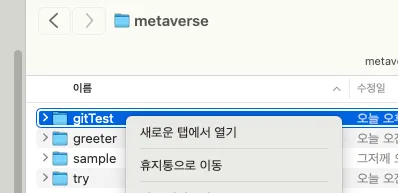 폴더 생성 (metaverse/gittest)