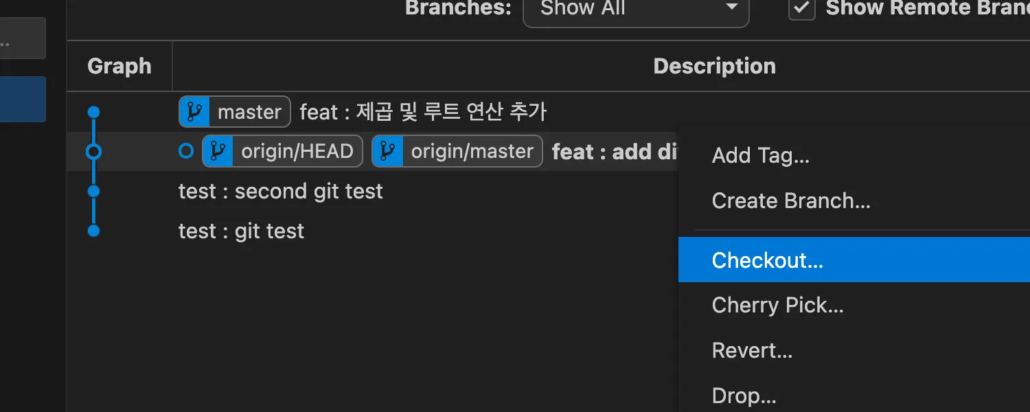 하나 아랫줄을 선택하여 Checkout 을 눌러보자