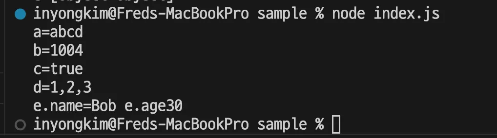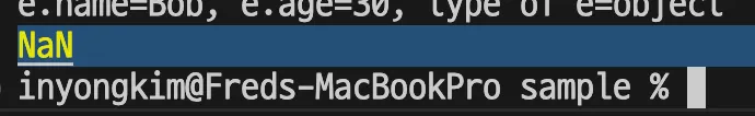 console.log("e.name=" + e.name + ", e.age=" + e.age + ", type of e=" + typeof e);