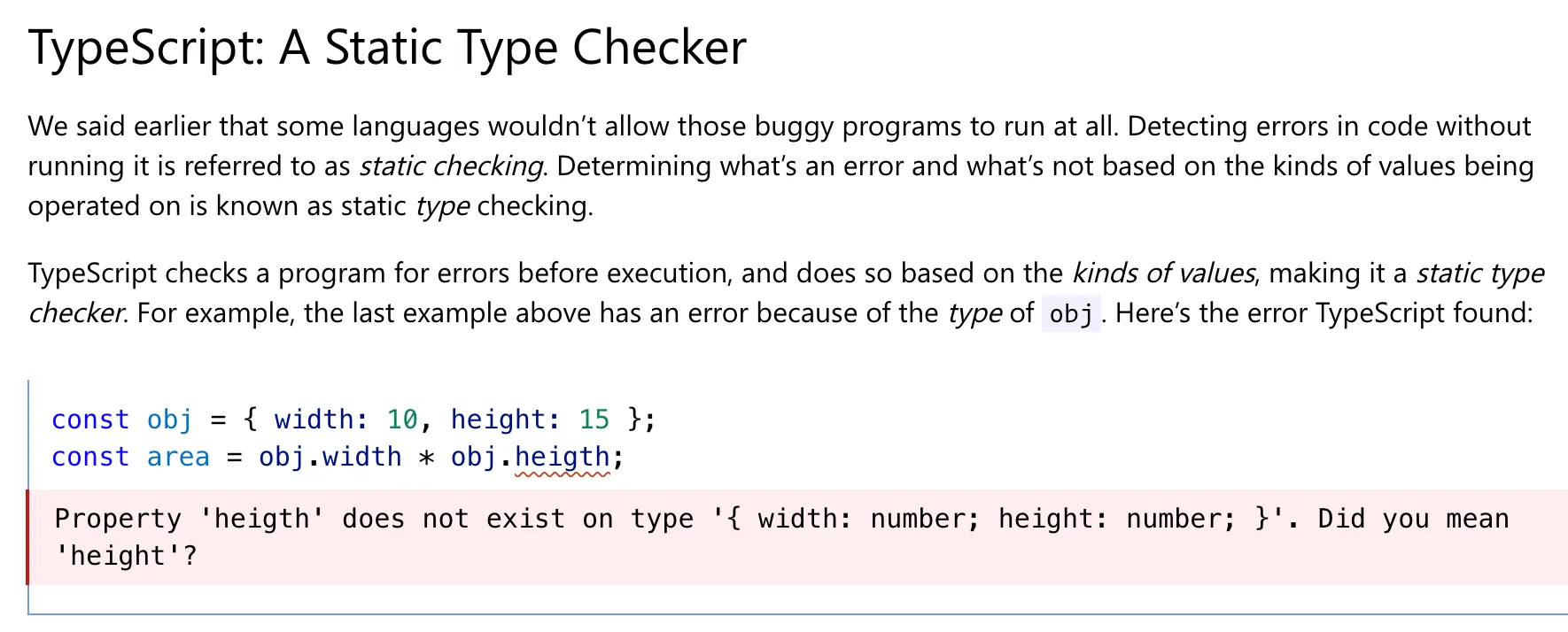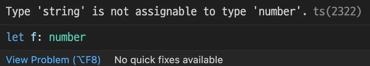 위에서 본 것 처럼 타입스크립트는 변수 초기화 단계에서 타입을 지정하여 개발자 환경에서부터 타입과 관련된 오류를 찾아 낼 수 있다.