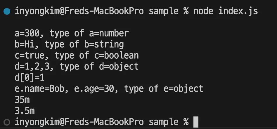 index.js에서 아래와 같은 기본 Javascript 변수 선언 및 할당(초기화)