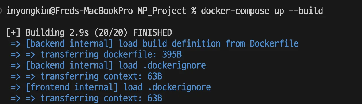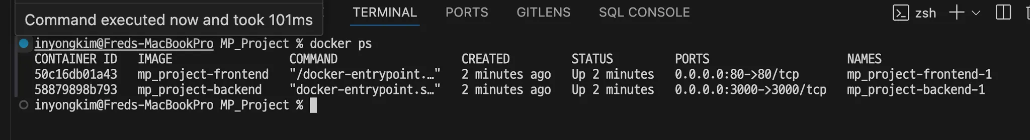 터미널 MP_Project/Back-end/ 경로(Root)에서