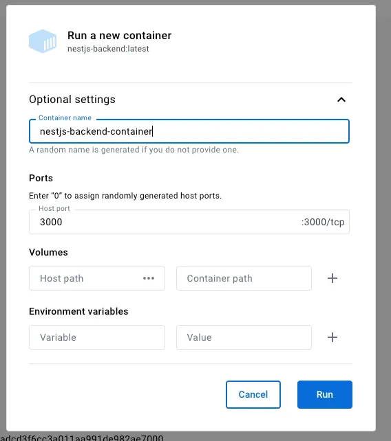docker run -p 3000:3000 --name nestjs-backend-container nestjs-backend