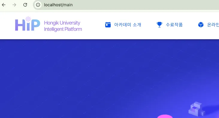 서버 실행 모습, 개발용 실행과 달리 ng serve와 달리 빌드된 프로젝트(ng build로 생성된 www폴더 내 생성됨)가 실행되는 것