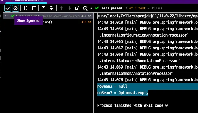 주입할 스프링 빈이 없어도 동작할 때가 있다. 그런데 @Autowired 만 사용하면 required 옵션이 기본값 ‘true’로 되어 있어 자동 주입 대상이 없으면 오류가 발생한다.