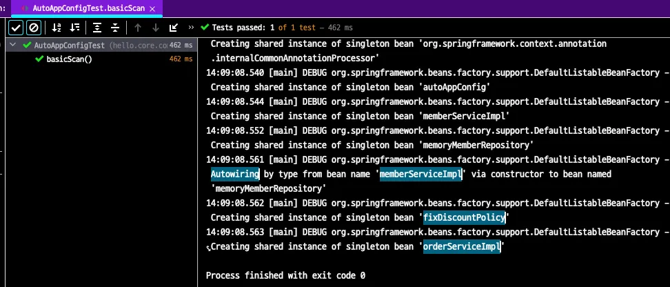 스프링 빈이 아닌(빈 등록을 명시 하지 않은 클래스)인 Member 객체를 넣었다.