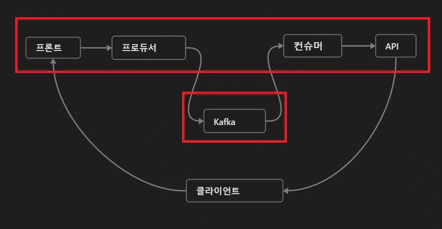 실무에선 컨슈머는 직접 클라이언트에게 응답을 보내지 않고, 결과를 프로듀서에게 전달하고 프로듀서가 클라이언트에게 응답을 보내는 구조로 처리로 합니다.