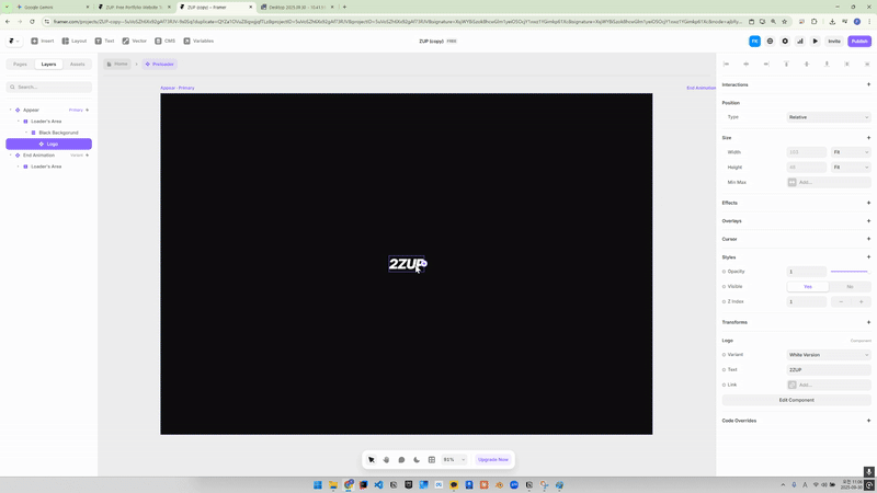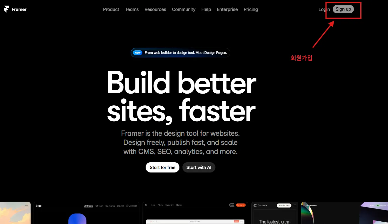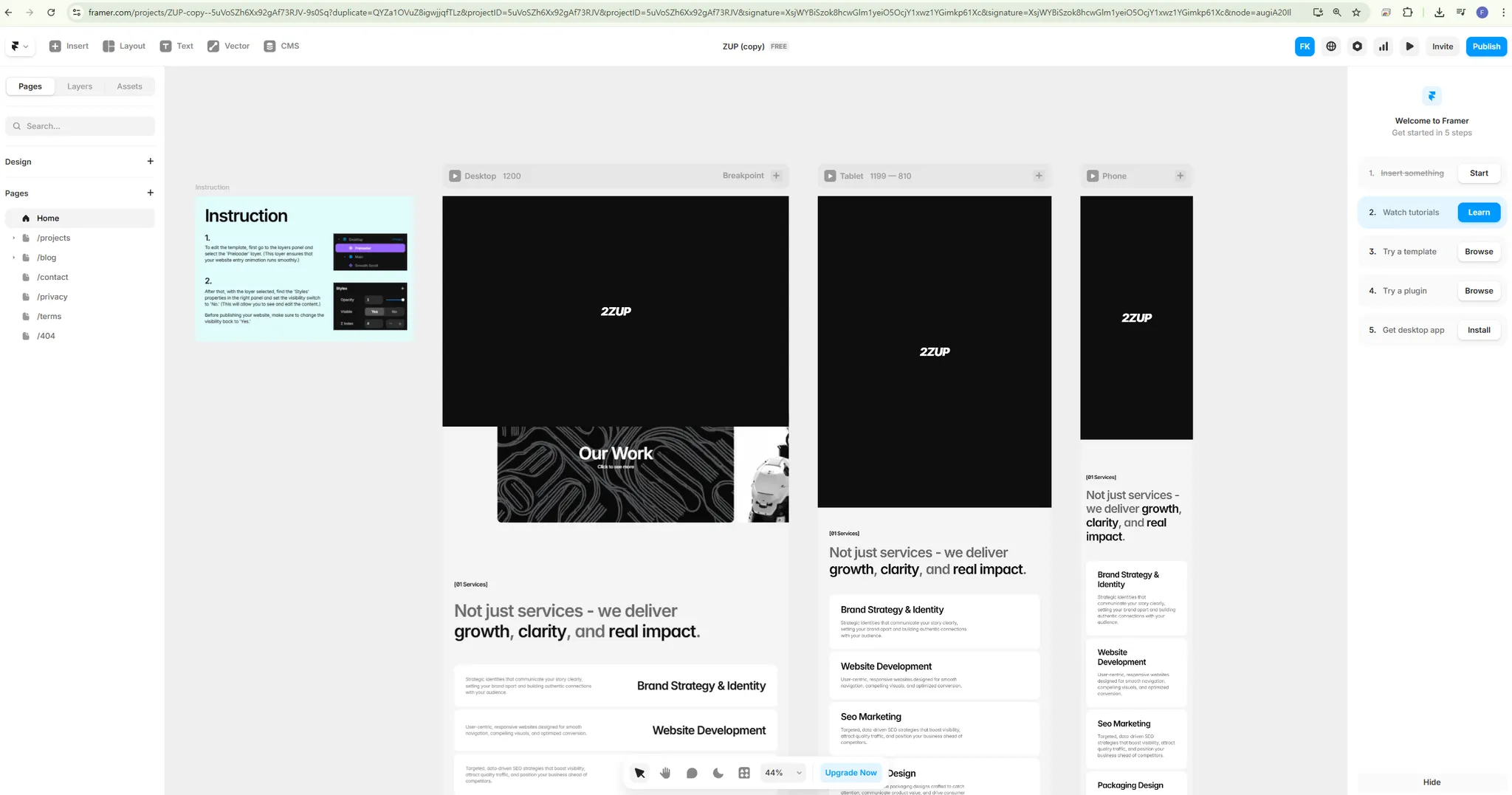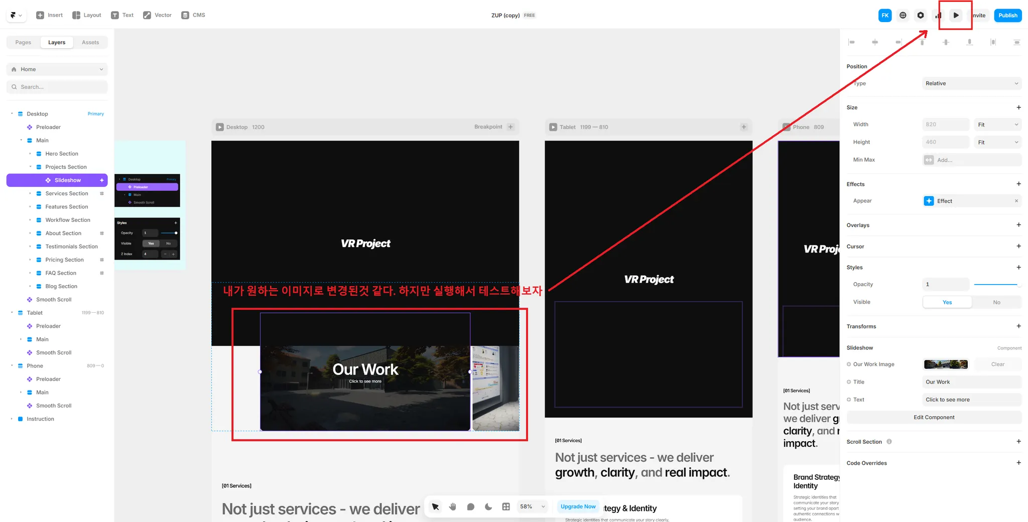 완벽히 framer처럼 뒷부분까지 모두 수정하기 위해서는 유료 플랜으로 진행해야하고, 도메인 구매 등 추가적인 설정이 필요하기 때문에 우선 여기까지 진행하도록 한다.