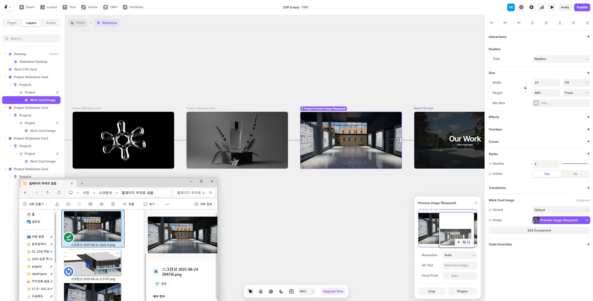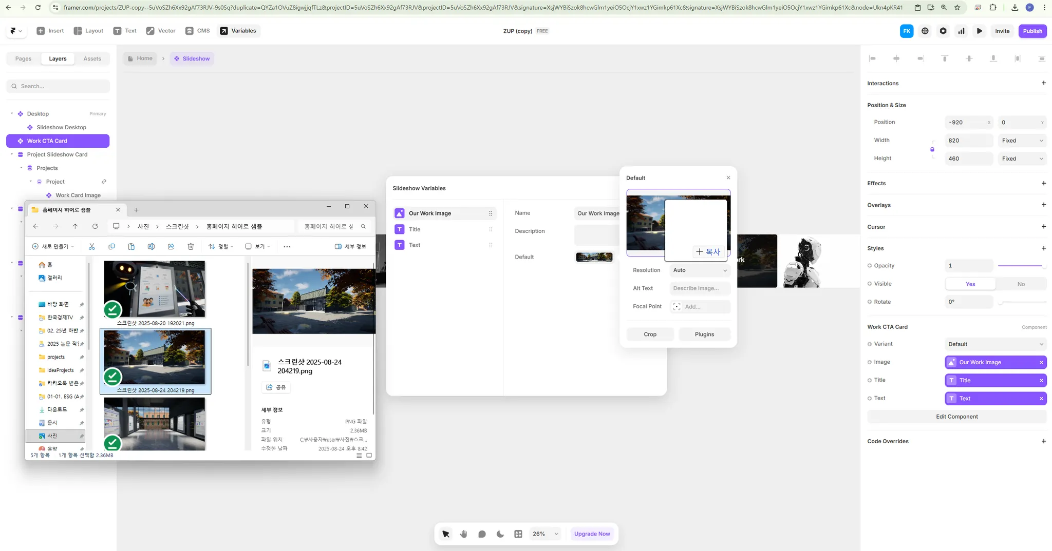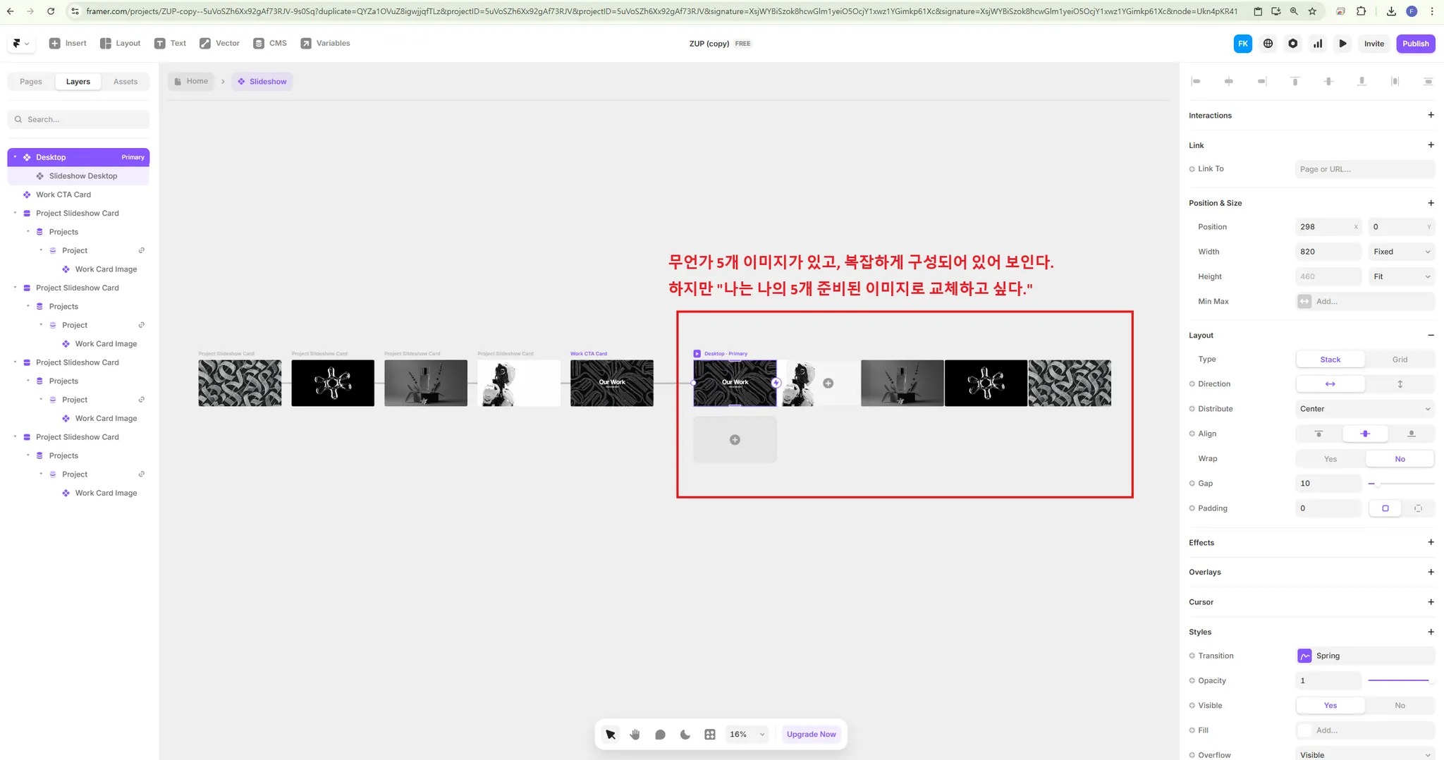 하나씩 왼쪽 카드부분에 나의 이미지를 넣어보니 오른쪽 슬라이드 부분이 자동으로 바뀌는 것을 확인했다.