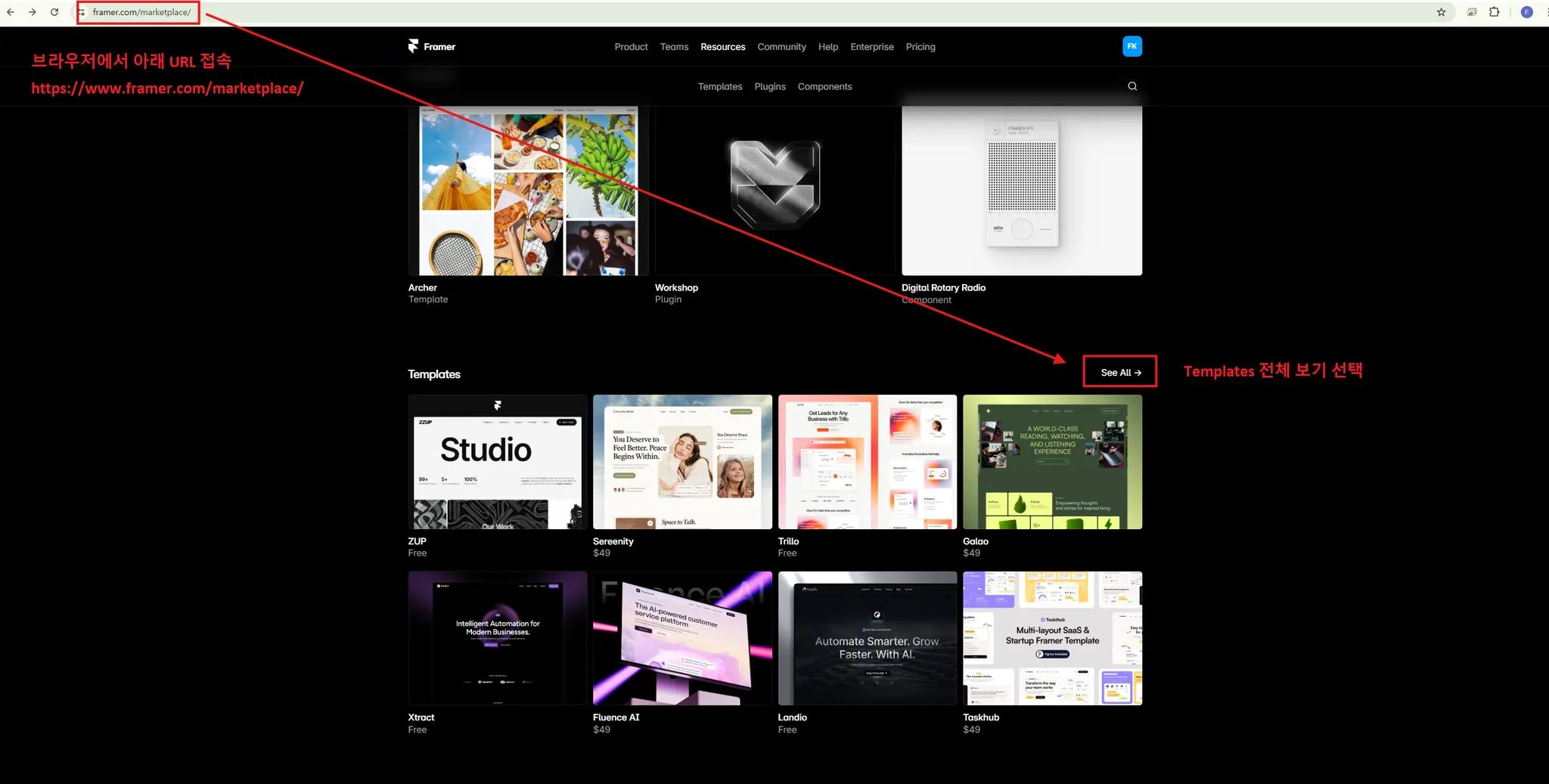 템플릿들을 살펴보기 위해서 전체 목록을 살펴보기