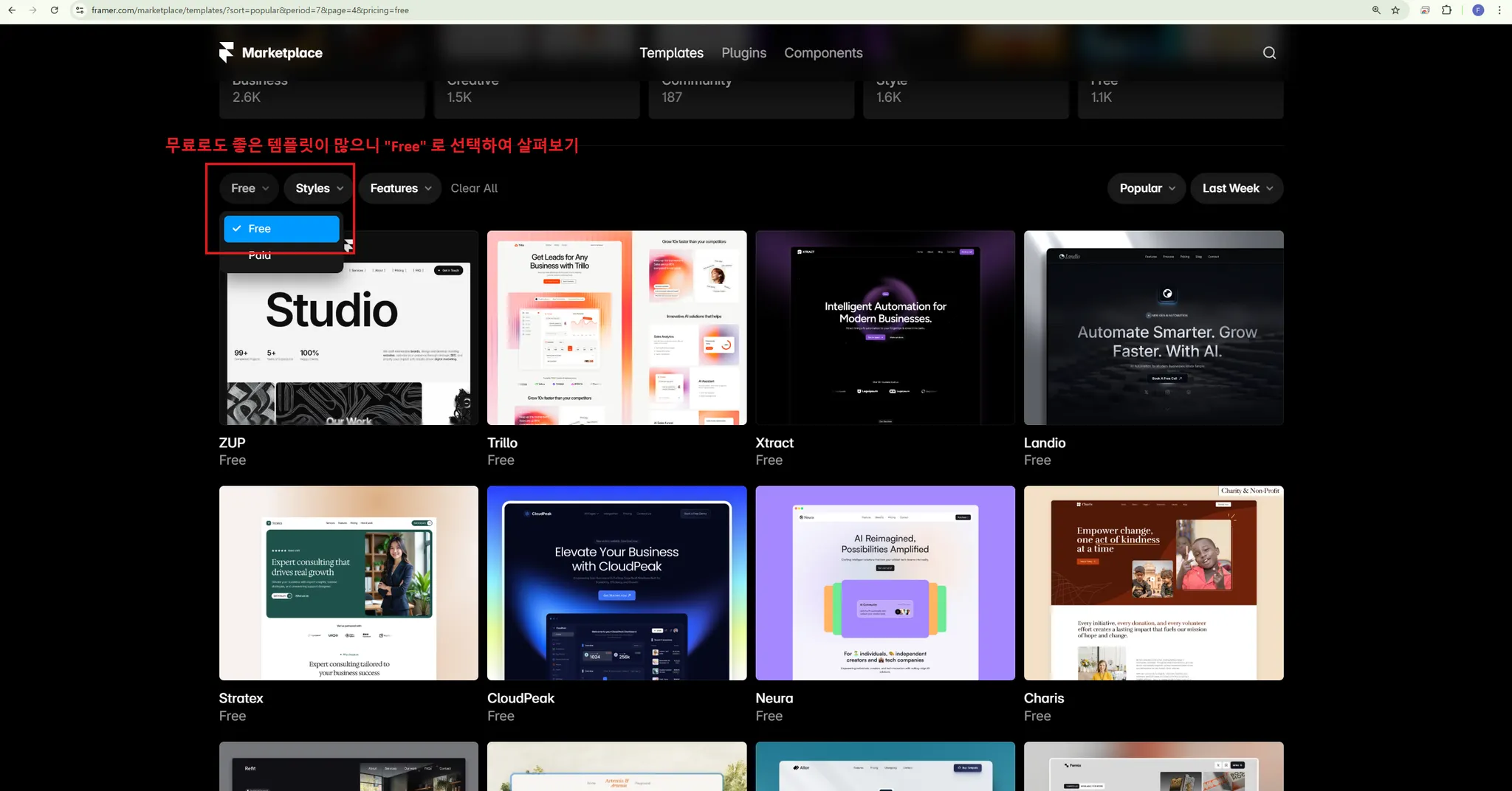 “무료” 템플릿 모아서 살펴보기 및 고르기