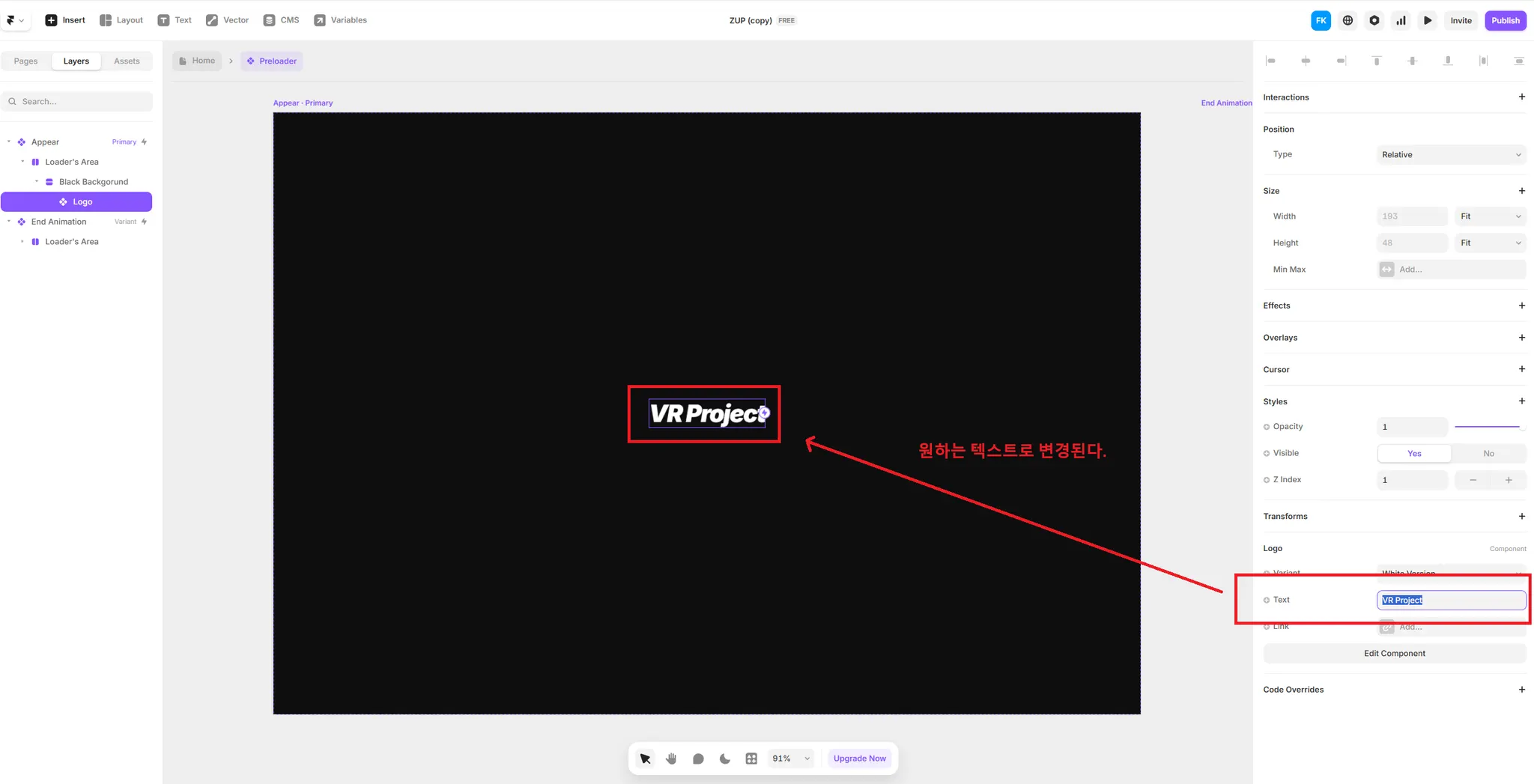하지만 우리는 움직임은 그대로, 우리의 작품 이미지로만 교체하고 싶다.