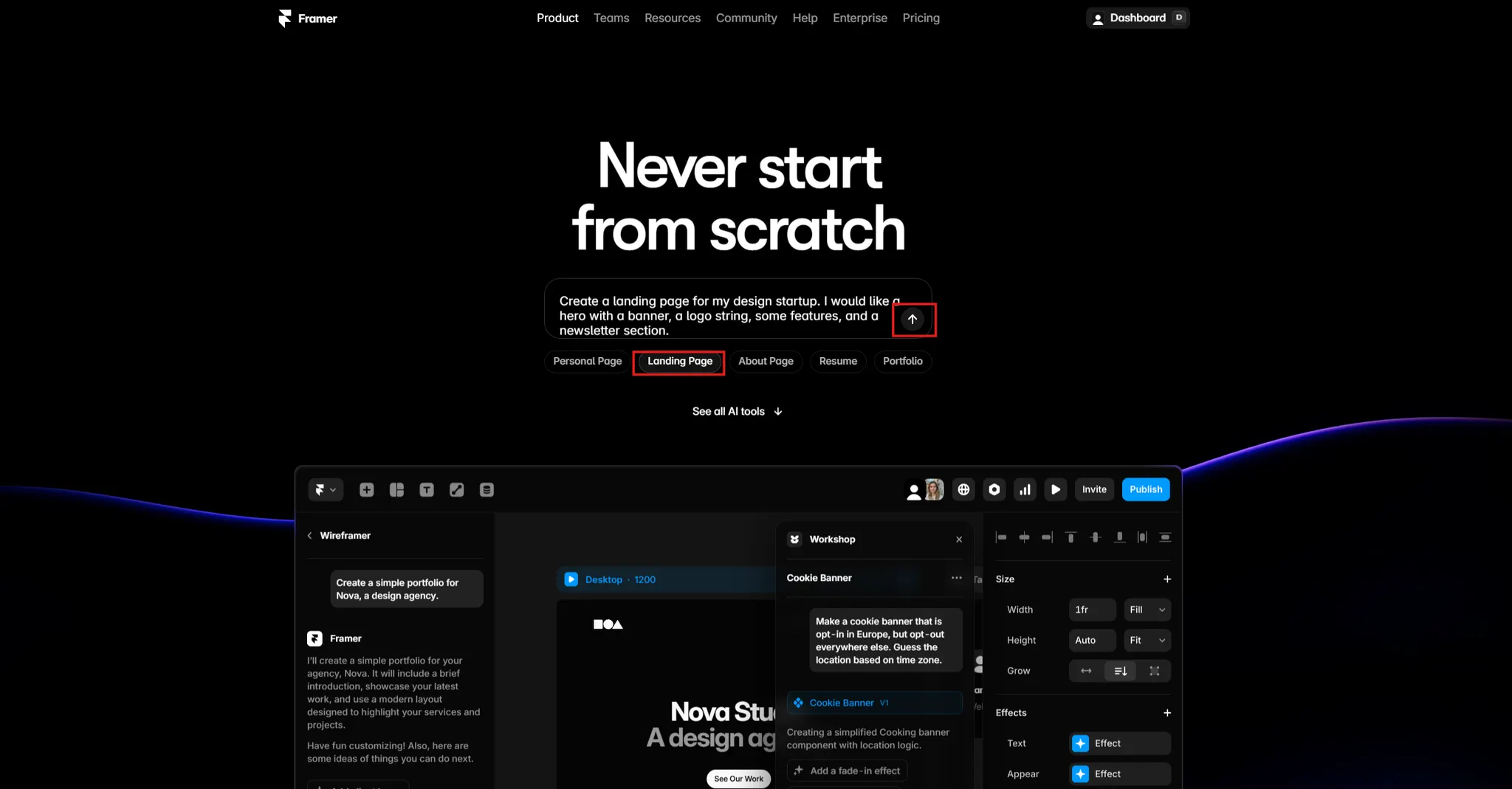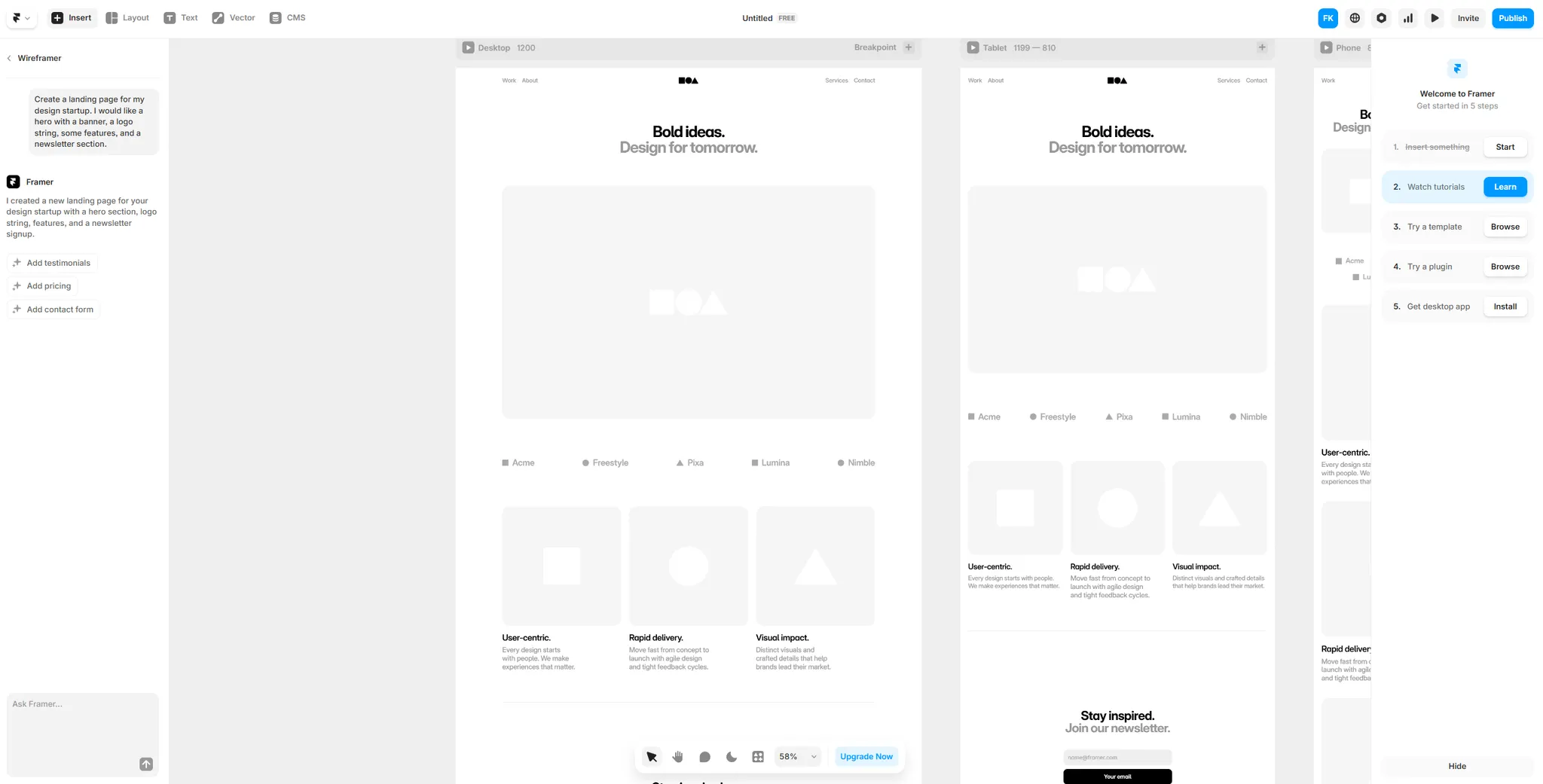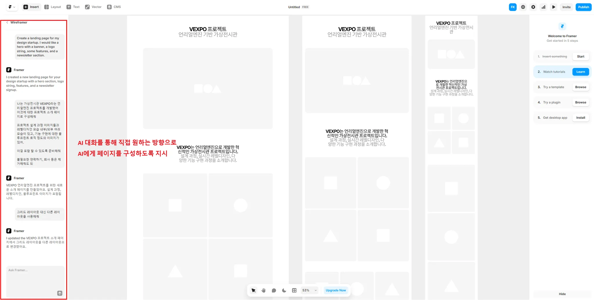 왼쪽 Ask Framer… 에서 원하는 것을 입력해보려고 한다.