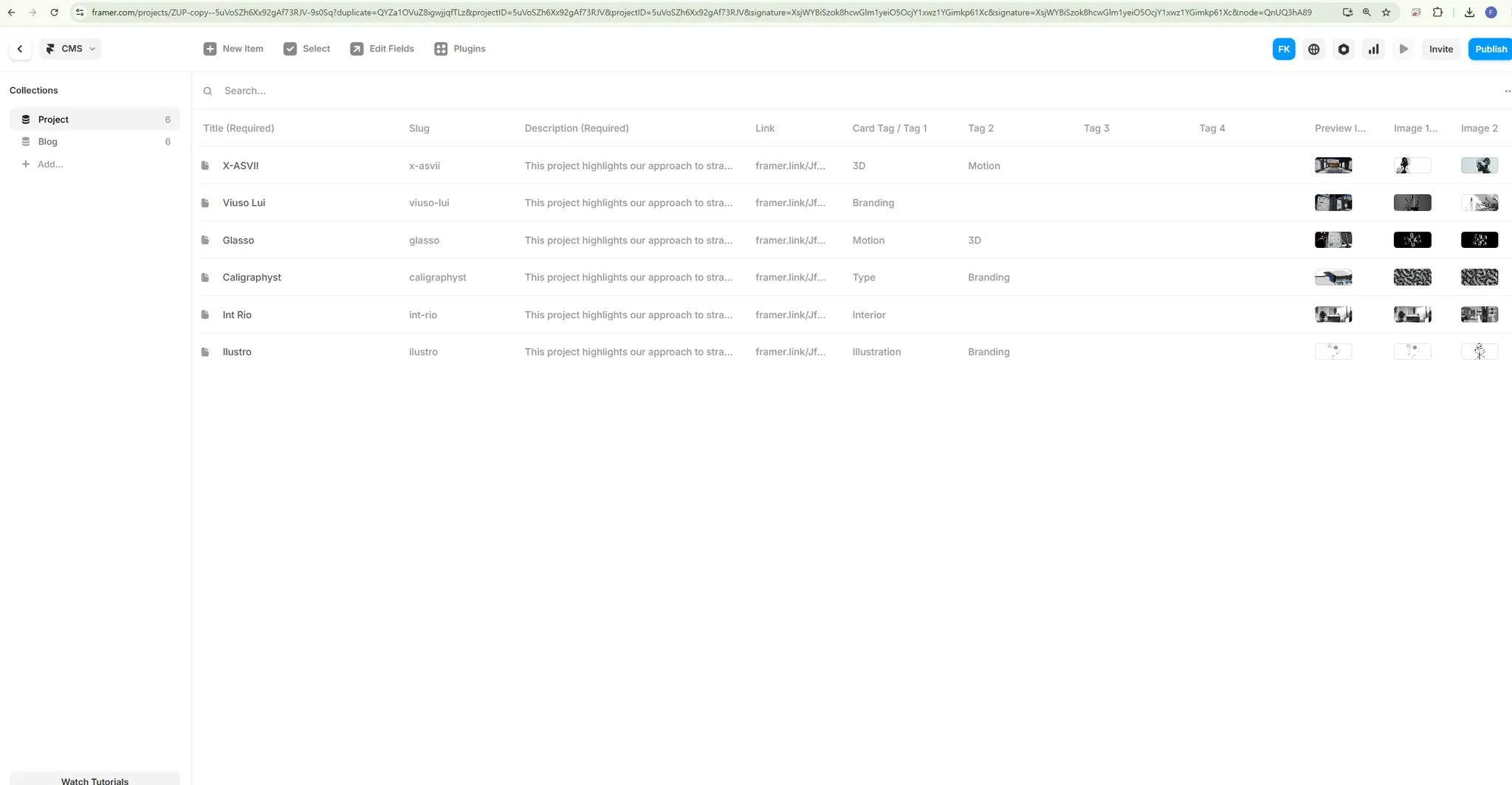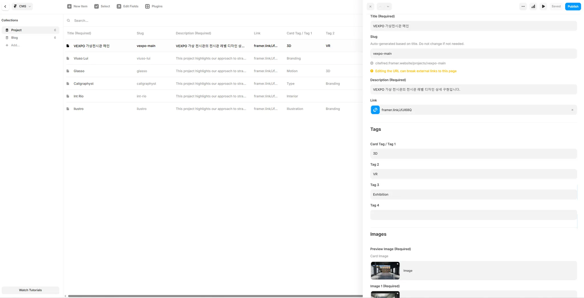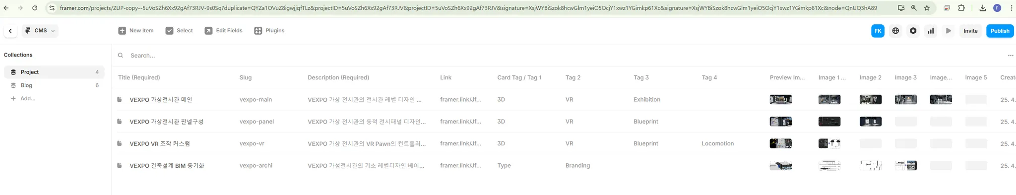 Edit in CMS를 들어가보면 다음처럼 등록된 프로젝트들이 실제로 보이게 된다.