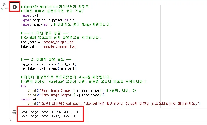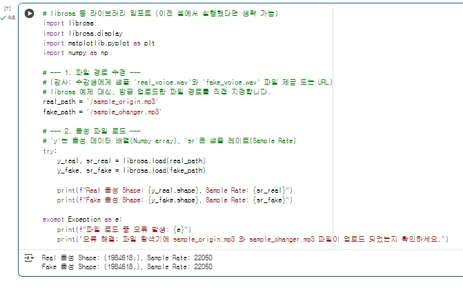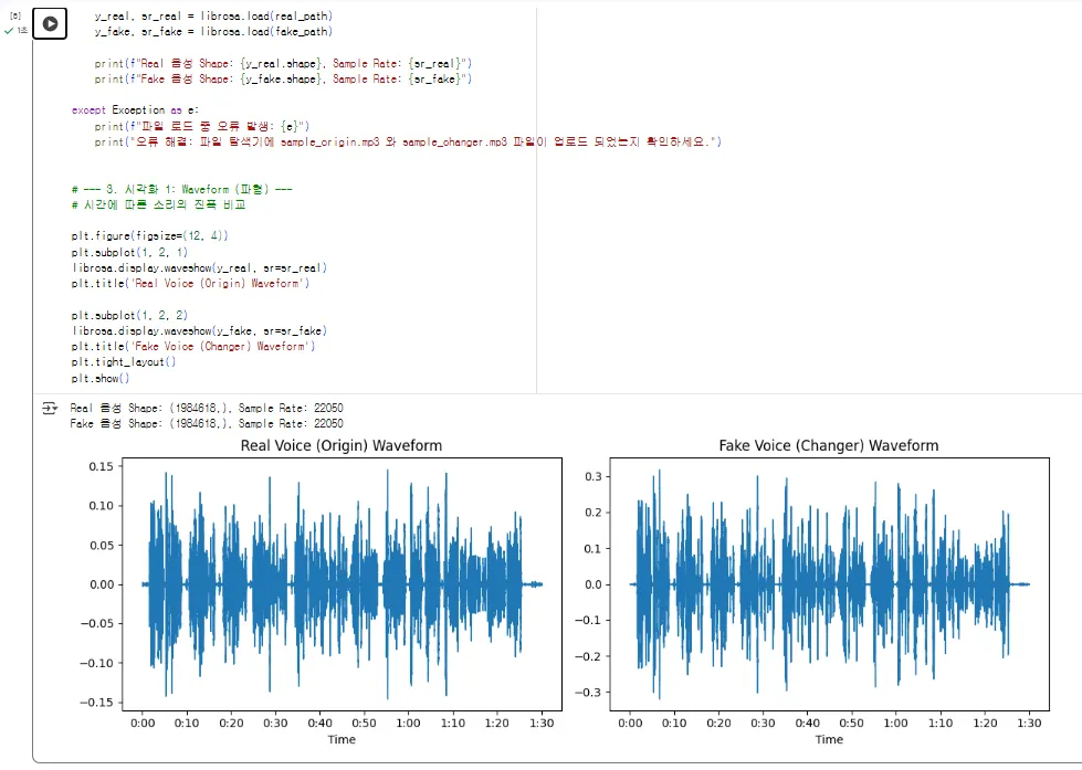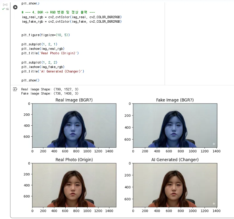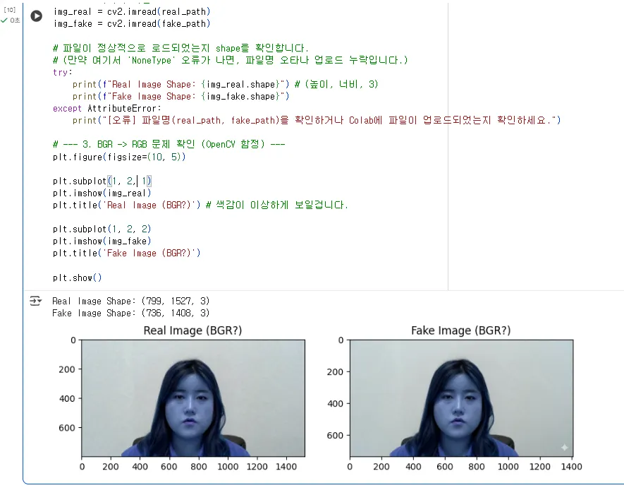 print("[오류] 파일명(real_path, fake_path)을 확인하거나 Colab에 파일이 업로드되었는지 확인하세요.")