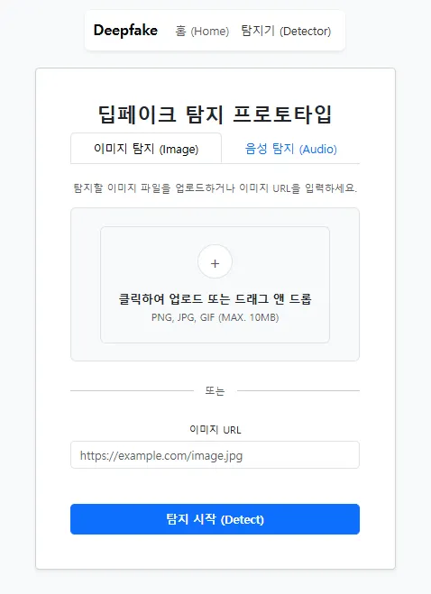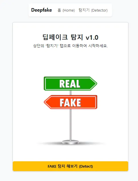 이 링크를 클릭하면, 페이지 전체가 '깜빡'이지 않고도 /와 /detector로 주소가 바뀌면서 <Home> 페이지와 <DeepfakeDetector> 페이지가 교체되는 것을 볼 수 있습니다.
