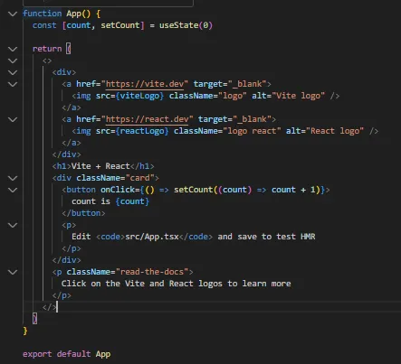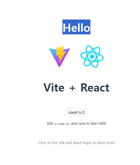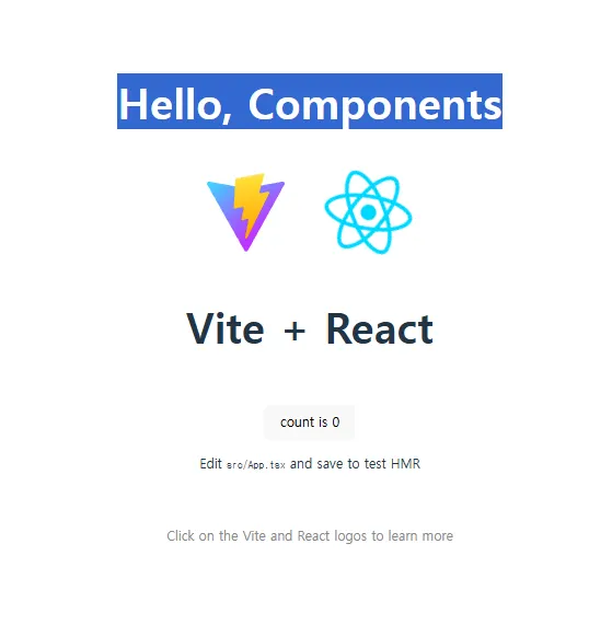 'JSX 및 기본 컴포넌트' -> App.tsx 파일에 <h1> 태그도 넣어봤습니다.