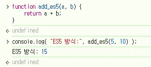 console.log( "ES5 방식:", add_es5(5, 10) );