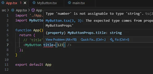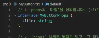 'Props 전달 실습' -> MyButton.tsx 컴포넌트를 만들고, title이라는 Prop을 전달하는 실습까지 마쳤습니다."