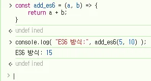 console.log( "ES6 방식:", add_es6(5, 10) );