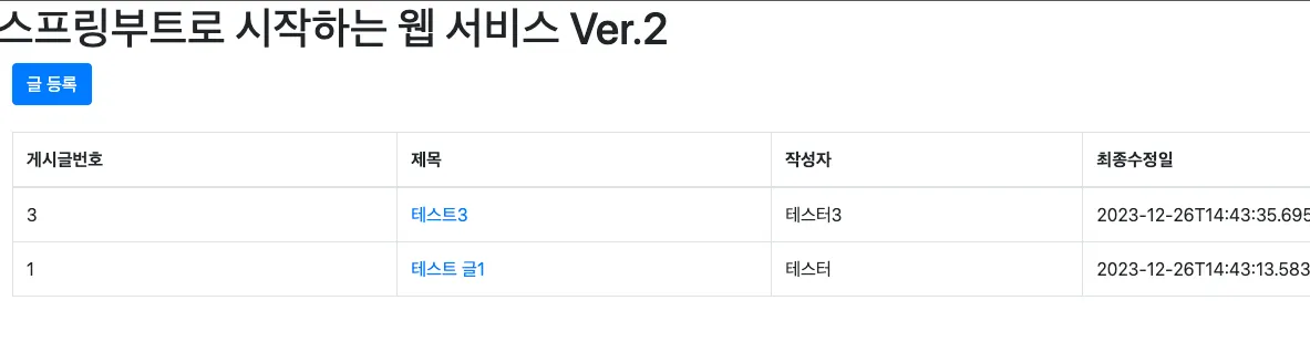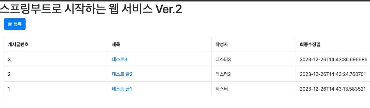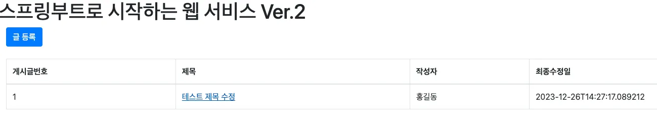 2번 테스트 글이 삭제된 갱신된 글 목록
