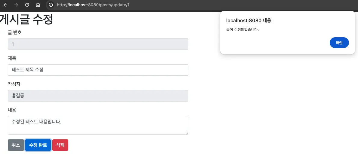 글 수정 뷰 페이지+API 작동 테스트