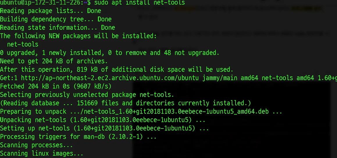 sudo apt install net-tools