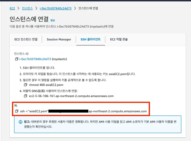AWS 콘솔에서 간단히 브라우저에서도 콘솔로 EC2 내부에 접근 할 수도 있습니다. SSH 클라이언트에서 제공해주는 CLI 명령어를 통해서 로컬 터미널을 통해 EC2로 접근했습니다.