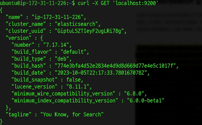 이제 ELK 설치가 완료되었으며 버전 확인을 통해서 설치 상태를 확인합니다.