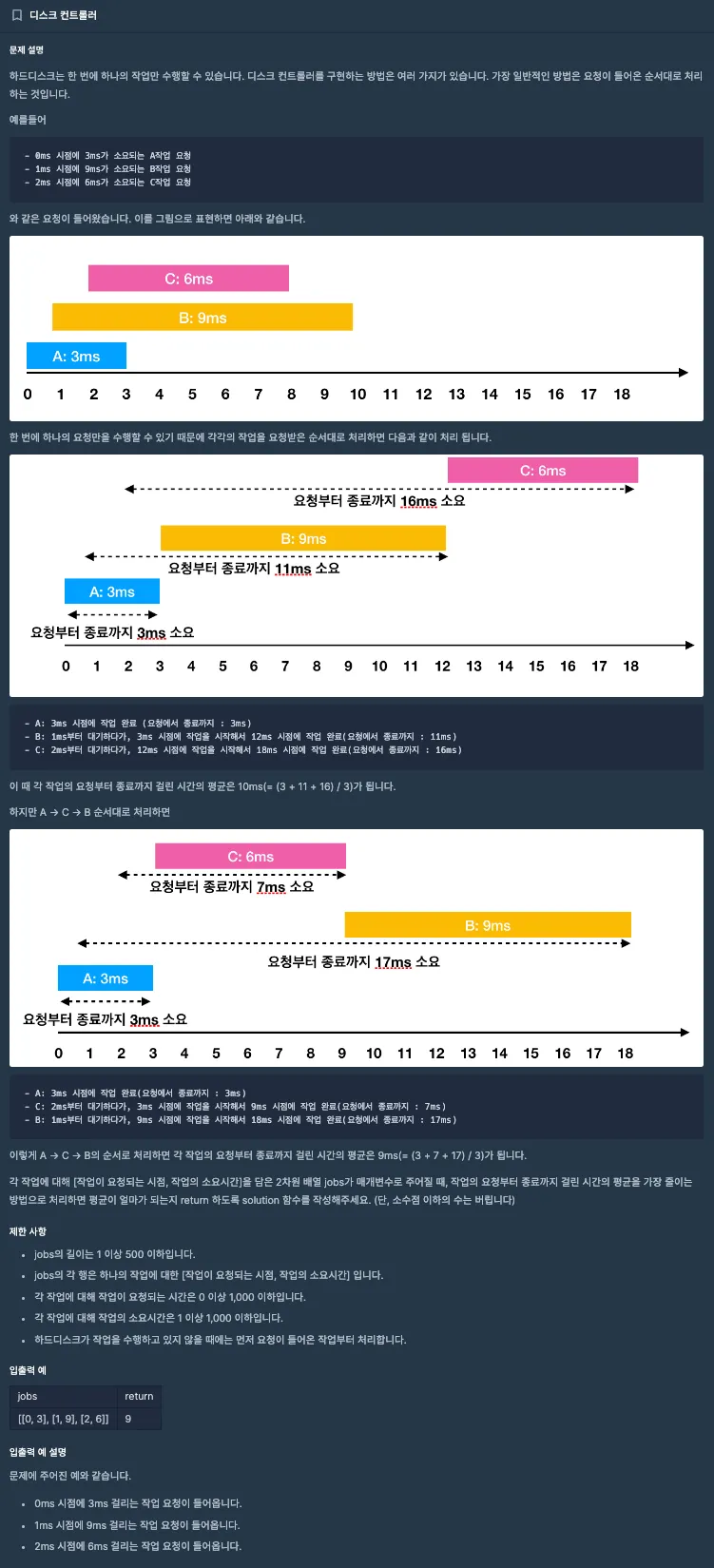 이렇게 정렬된 순서대로 작업을 처리함으로써 최적의 평균 시간을 얻을 수 있게 됩니다.