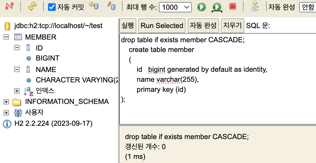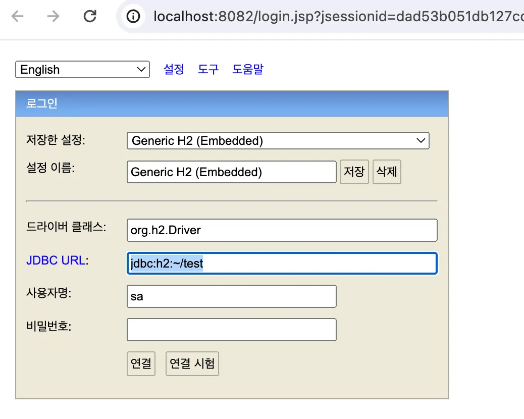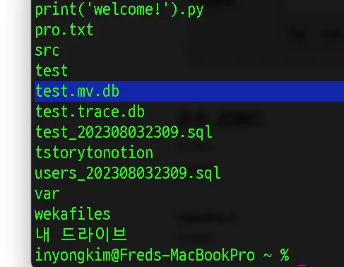 최초 생성시 다음처럼 홈 경로에 test.mv.db 생성 확인